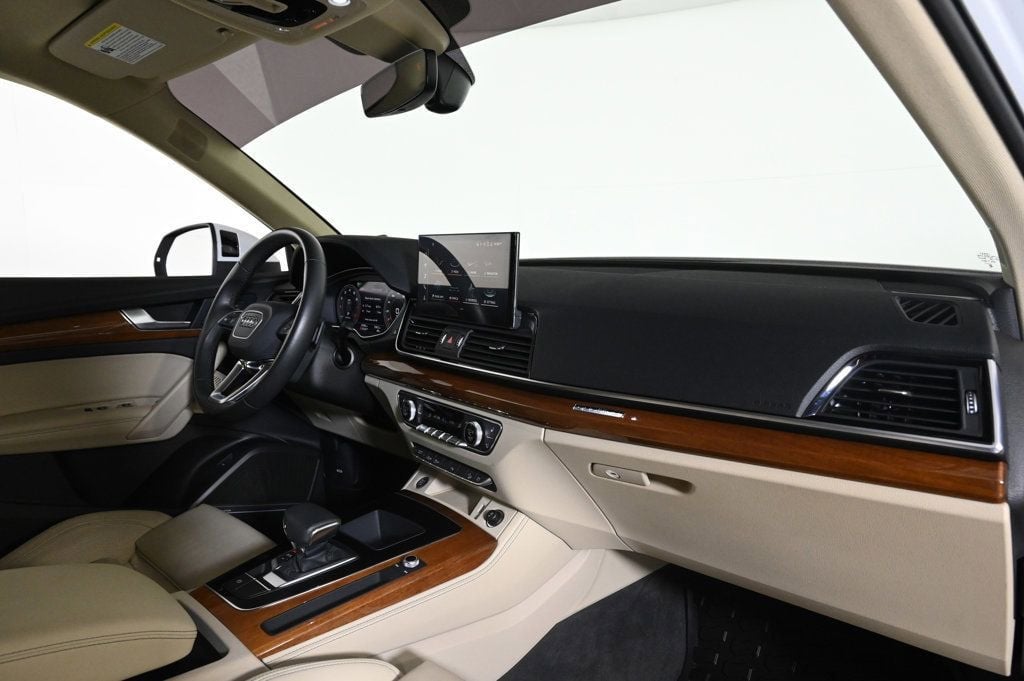 VERY LOW MILES! At just 25680 miles, this 2023 Audi provides great value. KEY FEATURES AND OPTIONS Comes equipped with: Air Conditioning, Rear Air Conditioning, Sunroof, Front Heated Seats. This Audi Q5 also includes Power Driver's Seat, Clock, Climate Control, Power Passenger Seat, Tachometer, Multi-Zone Climate Control, Memory Seat Position, Digital Info Center, Homelink System, Privacy Glass/Tinted Windows, Tilt Steering Wheel, Power Steering, Roof Rack, Power Windows, Steering Radio Controls, Wood Trim, Power Mirrors, Moonroof, Leather Steering Wheel, Leather Shifter, Driver Airbag, ABS Brakes, Fog Lights, Passenger Airbag, Traction Control, Intermittent Wipers, Side Airbags, Dynamic Stability, Keyless Entry, Rear Defogger, Security System, AM/FM, Satellite Radio, Sliding Rear Window, Rear Spoiler, Rear Wipers, Center Arm Rest, Remote Trunk Lid, Vanity Mirrors, Heated Mirrors, Rear Fog Lamps, Child Proof Door Locks, Daytime Running Lights, Parking Sensors, Side Curtain Airbags, Roll Stability Control, Power Lift Gate, Tire Pressure Monitor, Carpeted Floor Mats, Overhead Console, Heated Steering Wheel, Aux. Audio Input, Voice Control. Air Conditioning, Climate Control, Dual Zone Climate Control, Tinted Windows, Power Steering, Power Windows, Power Mirrors, Leather Steering Wheel, Leather Shifter, Power Drivers Seat, Power Passenger Seat, Memory Seat Position, Roof Rack, Rear Air Conditioning, Wood Trim, Clock, Tachometer, Digital Info Center, Homelink System, Tilt Steering Wheel, Steering Wheel Radio Controls, Sunroof, Moonroof, Driver Airbag, Passenger Airbag, Side Airbags, Keyless Entry, Security System, ABS Brakes, Traction Control, Dynamic Stability, Rear Defogger, Fog Lights, Intermittent Wipers, AM/FM, Alloy Wheels, Leather Interior Surface, Convenience Package, Premium Plus Package, Warm Weather Package, 10 Speakers, Bang & Olufsen Sound System with 3D Sound, Radio data system, Radio: Audi Sound System, SiriusXM with 360L, Automatic temperature control, Audi Advanced Key, Power driver seat, Four wheel independent suspension, 4-Wheel Disc Brakes, Dual front impact airbags, Dual front side impact airbags, Emergency communication system: Audi connect CARE, Front anti-roll bar, Low tire pressure warning, Occupant sensing airbag, Overhead airbag, Rear anti-roll bar, Power Liftgate, Brake assist, Exterior Parking Camera Rear, Delay-off headlights, Hands-On Detection Steering Wheel, Audi Beam-Rings, Auto-Dimming Power Folding Exterior Mirrors, Bumpers: body-color, Heated door mirrors, Power door mirrors, Spoiler, Turn signal indicator mirrors, Audi Active Lane Assist, Audi Guard All-Weather Floor Mats (Set of 4), Audi Virtual Cockpit Plus, Auto-dimming Rear-View mirror, Compass, Driver door bin, Driver vanity mirror, Front reading lights, Genuine wood console insert, Genuine wood dashboard insert, Genuine wood door panel insert, Heated 8-Way Power Front Bucket Seats, Heated Steering Wheel, Illuminated entry, Integrated Toll Module Delete (DISC), Leatherette Covered Center Console & Door Armrests, Outside temperature display, Overhead console, Passenger vanity mirror, Power Adjustable Steering Column, Rear reading lights, Rear seat center armrest, Telescoping steering wheel, Top View Camera System, Traffic Jam Assist, Ventilated Front Sport Seats with 4-Way Power Lumbar, Front Center Armrest, Heated front seats, Leather Seating Surfaces, Split folding rear seat, Sport Plus Seats, Passenger door bin, Privacy Trunk Cover, Wheels: 18 5-Arm-Turbine Design, Wheels: 19 5-Double-Arm Design Bi-Color Finish, Manual Rear Side Window Sunshades, Rain sensing wipers, Rear window wiper, 5.302 Axle Ratio Aux. Audio Input, Carpeted Floor Mats, Center Arm Rest, Child Proof Door Locks, Daytime Running Lights, Front Heated Seats, Heated Mirrors, Heated Steering Wheel, Overhead Console, Parking Sensors, Power Lift Gate, Rear Fog Lamps, Rear Spoiler, Rear Spoiler, Rear Wipers, Remote Trunk Lid, Roll Stability Control, Side Curtain Airbags, Sliding Rear Window, Tire Pressure Monitor, Vanity Mirrors - Contact Alvaro Uribe at 786-628-7606 or auribe@ferrariofmiami.com for more information. -