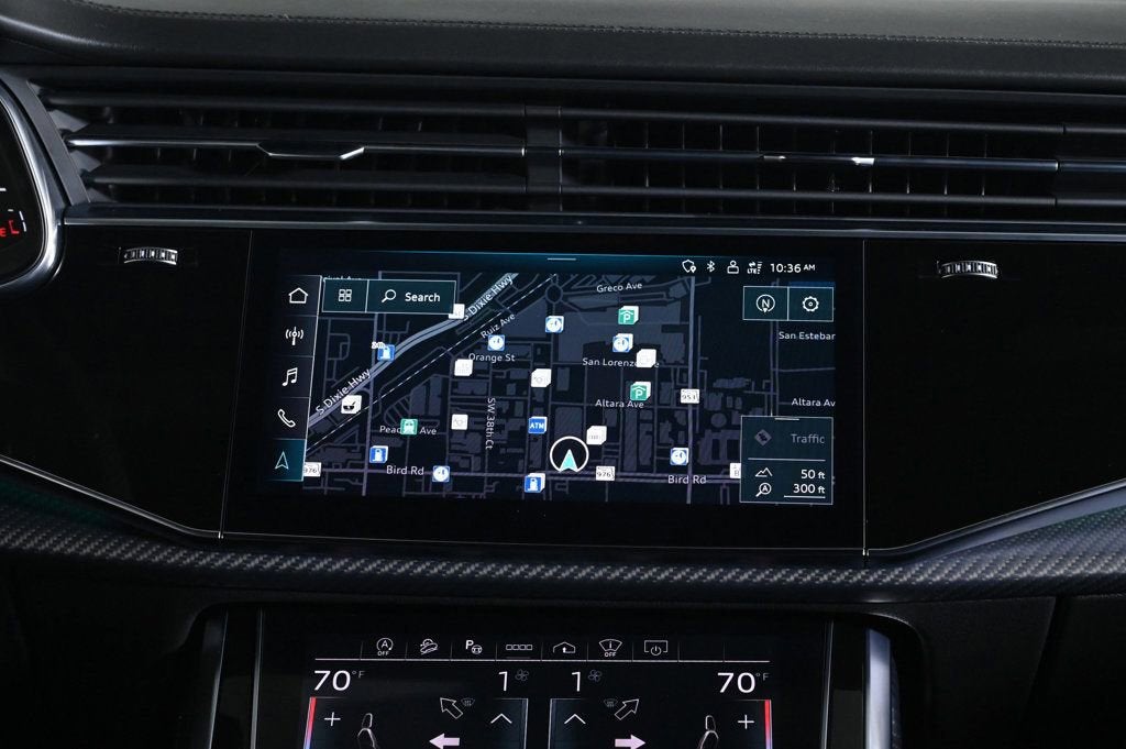 EXTREMELY LOW MILES! Get the best value from your vehicle purchase. This 2023 boasts an extremely low 31707 miles! KEY FEATURES AND OPTIONS Comes equipped with: Air Conditioning, Rear Air Conditioning, Sunroof, MP3, Bluetooth, Front Heated Seats. This Audi RS Q8 also includes Clock, Climate Control, Power Passenger Seat, Tachometer, Multi-Zone Climate Control, Memory Seat Position, Digital Info Center, Cruise Control, Homelink System, Privacy Glass/Tinted Windows, Tilt Steering Wheel, Power Steering, Telescoping Steering Wheel, Power Windows, Steering Radio Controls, Power Mirrors, Moonroof, Leather Steering Wheel, Leather Shifter, Driver Airbag, ABS Brakes, Fog Lights, Passenger Airbag, Traction Control, Intermittent Wipers, Dynamic Stability, Keyless Entry, Rear Defogger, Security System, AM/FM, Anti-Theft, Sliding Rear Window, Air Conditioned Seats, Rear Spoiler, Sport Seats, Rear Wipers, Carbon Fiber Trim, Center Arm Rest, Remote Fuel Door, Vanity Mirrors, Heated Mirrors, Rear Fog Lamps, Child Proof Door Locks, Daytime Running Lights, Parking Sensors, Front AC Seats, Reverse Camera, Side Curtain Airbags, Roll Stability Control, Rear-Side Airbags, Power Lift Gate, Tire Pressure Monitor, Carpeted Floor Mats, Overhead Console, Aux. Audio Input, Voice Control. Air Conditioning, Climate Control, Dual Zone Climate Control, Cruise Control, Tinted Windows, Power Steering, Power Windows, Power Mirrors, Leather Steering Wheel, Leather Shifter, Power Passenger Seat, Memory Seat Position, Rear Air Conditioning, Clock, Tachometer, Digital Info Center, Homelink System, Tilt Steering Wheel, Telescoping Steering Wheel, Steering Wheel Radio Controls, Sunroof, Moonroof, Driver Airbag, Passenger Airbag, Keyless Entry, Security System, ABS Brakes, Traction Control, Dynamic Stability, Rear Defogger, Fog Lights, Intermittent Wipers, AM/FM, Anti-Theft, Alloy Wheels, Leather Interior Surface, Navigation system: Audi MMI Navigation plus with Touch Response, 17 Speakers, Radio data system, Radio: MMI Navigation Plus, Automatic temperature control, Power driver seat, Steering wheel memory, Adaptive suspension, Auto-leveling suspension, Four wheel independent suspension, 4-Wheel Disc Brakes, Dual front impact airbags, Dual front side impact airbags, Emergency communication system: Audi connect CARE, Front anti-roll bar, Low tire pressure warning, Occupant sensing airbag, Overhead airbag, Rear anti-roll bar, Rear side impact airbag, Power Liftgate, Brake assist, Exterior Parking Camera Rear, Auto High-beam Headlights, Delay-off headlights, Fully automatic headlights, Headlight cleaning, Auto-dimming door mirrors, Bumpers: body-color, Heated door mirrors, Power door mirrors, Spoiler, Turn signal indicator mirrors, Auto-dimming Rear-View mirror, Compass, Driver door bin, Driver vanity mirror, Front reading lights, Heated & Ventilated Sports Seats Plus, Heated steering wheel, Illuminated entry, Outside temperature display, Overhead console, Passenger vanity mirror, Rear reading lights, Rear seat center armrest, Telescoping steering wheel, Front Center Armrest, Heated front seats, Perforated Valcona Leather Seating Surfaces, Split folding rear seat, Sport Plus Seats, Ventilated front seats, Passenger door bin, Wheels: 22 10-V-Spoke Star Design, Rear Window Blind, Rain sensing wipers, Rear window wiper, TBD Axle Ratio Air Conditioned Seats, Aux. Audio Input, Bluetooth, Carbon Fiber Trim, Carpeted Floor Mats, Center Arm Rest, Child Proof Door Locks, Daytime Running Lights, Front AC Seats, Front Heated Seats, Heated Mirrors, Overhead Console, Parking Sensors, Power Lift Gate, Rear Fog Lamps, Rear Spoiler, Rear Spoiler, Rear Wipers, Rear-Side Airbags, Remote Fuel Door, Reverse Camera, Roll Stability Control, Side Curtain Airbags, Sliding Rear Window, Sport Seats, Tire Pressure Monitor, Vanity Mirrors - Contact THE COLLECTION GENERAL at 786-349-9658 or GENERAL@THECOLLECTION.COM for more information. -