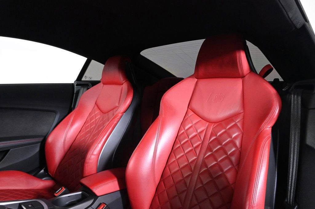 KEY FEATURES AND OPTIONS Comes equipped with: Air Conditioning, Navigation System, Front Heated Seats. This Audi TTS also includes Power Driver's Seat, Clock, Climate Control, Power Passenger Seat, Tachometer, Memory Seat Position, Digital Info Center, Cruise Control, Homelink System, Tilt Steering Wheel, Power Steering, Telescoping Steering Wheel, Power Windows, Steering Radio Controls, Power Mirrors, Leather Steering Wheel, Leather Shifter, Driver Airbag, ABS Brakes, Fog Lights, Passenger Airbag, Traction Control, Intermittent Wipers, Side Airbags, Dynamic Stability, Keyless Entry, Rear Defogger, Security System, AM/FM, CD Player, Rear Spoiler, Sport Seats, Center Arm Rest, Cup Holders, Vanity Mirrors, Heated Mirrors, Rear Fog Lamps, Daytime Running Lights, Parking Sensors, Reverse Camera, Side Curtain Airbags, Roll Stability Control, Tire Pressure Monitor, Carpeted Floor Mats, Onboard Hard Drive, Voice Control. Air Conditioning, Climate Control, Cruise Control, Power Steering, Power Windows, Power Mirrors, Leather Steering Wheel, Leather Shifter, Power Drivers Seat, Power Passenger Seat, Memory Seat Position, Phone, Clock, Tachometer, Digital Info Center, Homelink System, Tilt Steering Wheel, Telescoping Steering Wheel, Steering Wheel Radio Controls, Driver Airbag, Passenger Airbag, Side Airbags, Keyless Entry, Security System, ABS Brakes, Traction Control, Dynamic Stability, Rear Defogger, Fog Lights, Intermittent Wipers, AM/FM, CD Player, Alloy Wheels, Leather Interior Surface, Wheels: 20 Audi Sport 10-Y-Spoke Design Forged, Wheels: 20 Audi Sport 5-Arm-Cutter Design, Heated Front S Sport Seats, Fine Nappa Leather Seat Trim with S Embossing, Radio: Bang & Olufsen Sound System, Black Optic Package, Delete Front License Plate Holder, Audi Cargo Box, Audi S Beam, Audi Guard All-Weather Floor Mats, Brushed Aluminum Matte Inlays, Audi Virtual Cockpit with Sport Mode, High-Gloss Black Exterior Trim, Audi Connect, High Gloss Black Exterior Mirror Housings, Audi MMI Navigation Plus with MMI Touch, Red Brake Calipers, 12 Speakers, Navigation system: MMI Navigation plus, Exterior Parking Camera Rear, Compass, Auto-dimming Rear-View mirror, Front beverage holders, Turn signal indicator mirrors, Telescoping steering wheel, Sport steering wheel, Split folding rear seat, Rear anti-roll bar, Rain sensing wipers, Radio data system, Power driver seat, Power door mirrors, Passenger vanity mirror, Passenger door bin, Overhead airbag, Outside temperature display, Occupant sensing airbag, Low tire pressure warning, Knee airbag, Illuminated entry, Heated front seats, Heated door mirrors, Fully automatic headlights, Front reading lights, Front anti-roll bar, Four wheel independent suspension, Dual front side impact airbags, Dual front impact airbags, Driver vanity mirror, Driver door bin, Delay-off headlights, Bumpers: body-color, Brake assist, Automatic temperature control, Auto-dimming door mirrors, Adaptive suspension, Spoiler, Front Center Armrest, Sport Plus Seats, 4-Wheel Disc Brakes Carpeted Floor Mats, Center Arm Rest, Cup Holders, Daytime Running Lights, Front Heated Seats, Heated Mirrors, Navigation System, Parking Sensors, Rear Fog Lamps, Rear Spoiler, Rear Spoiler, Reverse Camera, Roll Stability Control, Side Curtain Airbags, Sport Seats, Tire Pressure Monitor, Vanity Mirrors - Contact Alvaro Uribe at 786-628-7606 or auribe@ferrariofmiami.com for more information. -
