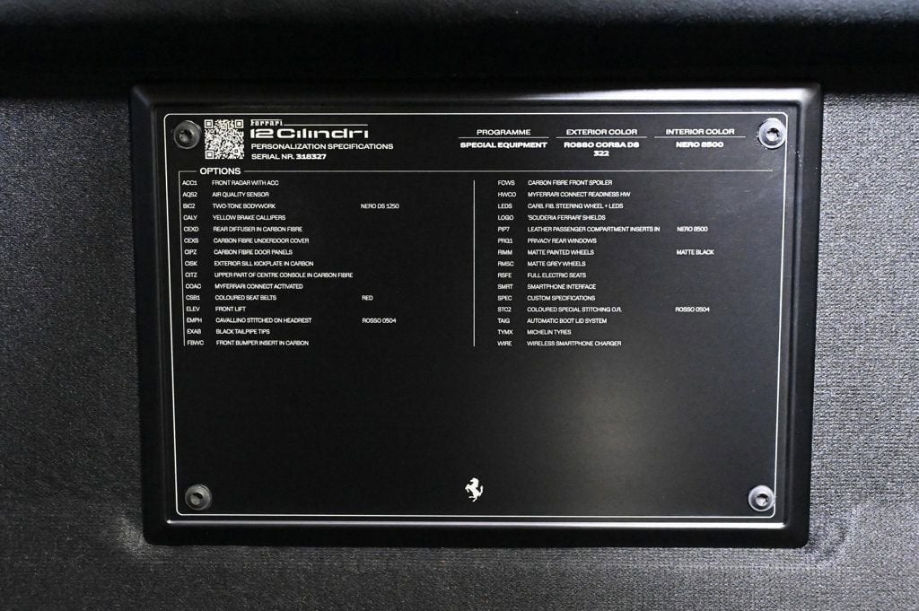 Recent Arrival! Rosso Corsa 2025 Ferrari 12Cilindri Base RWD 8 Speed Dual Clutch V12 Difference From the moment you drive into our one-of-a-kind facility, you will feel a difference in the energy here. Simply put: we are not your ordinary car dealership. What truly differentiates us is the professional level of service we provide. When you acquire a new or pre-owned automobile from us, both you and your automobile are treated with the utmost care and attentiveness like a member of our own family. That is why so many of our clients return to THE COLLECTION time and again, and refer us time and time again. We have also amassed an extraordinary team of employees. Plus, we have created all-new positions with your needs in mind. Including a Client Delight Manager which oversees our concierge team and whose sole purpose is to surprise and delight our guests; and on-staff technologists available to assist and educate you on all the latest features available on your vehicle. THE COLLECTION family will exceed your expectations, making this an uniquely gratifying experience that you will want to revisit time and time again. CARFAX One-Owner. Air Conditioning, Climate Control, Dual Zone Climate Control, Cruise Control, Power Steering, Power Windows, Power Mirrors, Leather Steering Wheel, Leather Shifter, Power Passenger Seat, Memory Seat Position, Clock, Tachometer, Digital Info Center, Tilt Steering Wheel, Telescoping Steering Wheel, Steering Wheel Radio Controls, Sunroof, Moonroof, Driver Airbag, Passenger Airbag, Side Airbags, Keyless Entry, Security System, ABS Brakes, Traction Control, Dynamic Stability, Rear Defogger, Fog Lights, Intermittent Wipers, AM/FM, Alloy Wheels, Leather Interior Surface, , 7 Speakers, Radio data system, Radio: 10.25 Touchscreen Capacitive Display, Automatic temperature control, Power driver seat, Four wheel independent suspension, 4-Wheel Disc Brakes, Ceramic disc brakes: front and rear, Dual front impact airbags, Dual front side impact airbags, Emergency communication system, Front anti-roll bar, Low tire pressure warning, Rear anti-roll bar, Exterior Parking Camera Rear, Delay-off headlights, Fully automatic headlights, Bumpers: body-color, Heated door mirrors, Power door mirrors, Spoiler, Apple CarPlay & Android Auto, Compass, Driver door bin, Front reading lights, Illuminated entry, Outside temperature display, Overhead console, Sport steering wheel, Standard Seats, Telescoping steering wheel, Front Center Armrest, Heated front seats, Leather Seat Trim, Sport Plus Seats, Passenger door bin, Wheels: 21 Standard, Rain sensing wipers Aux. Audio Input, Bluetooth, Carpeted Floor Mats, Center Arm Rest, Cup Holders, Daytime Running Lights, Front Heated Seats, Heated Mirrors, Navigation System, Overhead Console, Rear Fog Lamps, Rear Spoiler, Rear Spoiler, Remote Fuel Door, Remote Trunk Lid, Reverse Camera, Roll Stability Control, Tire Pressure Monitor - Contact THE COLLECTION GENERAL at 786-349-9658 or GENERAL@THECOLLECTION.COM for more information. -