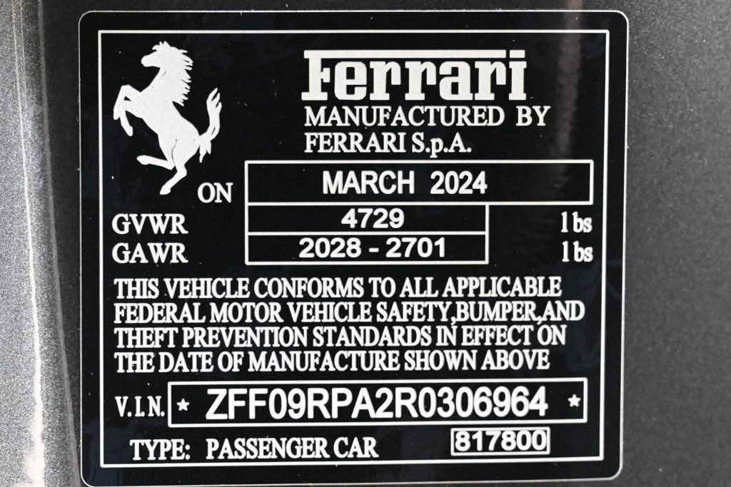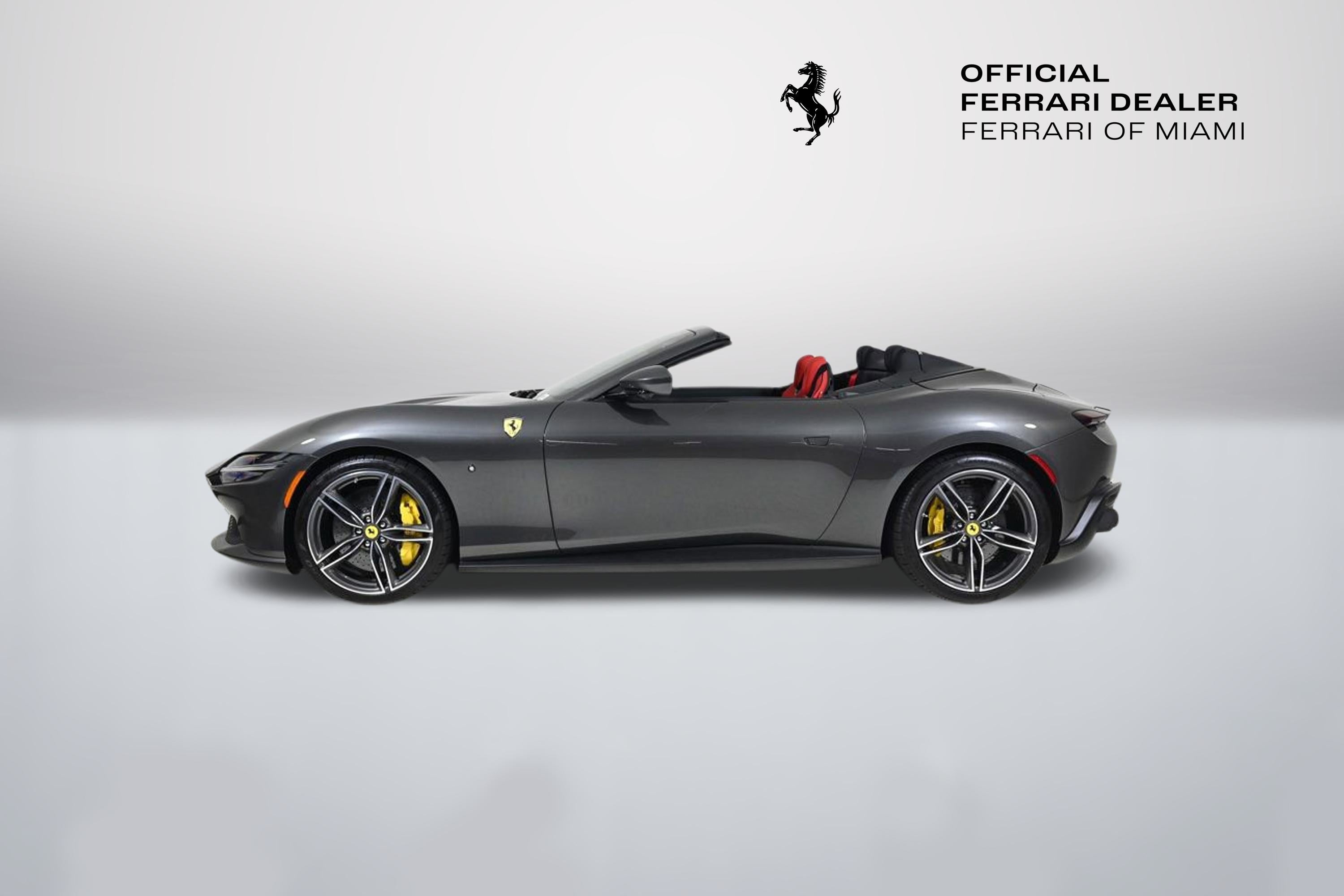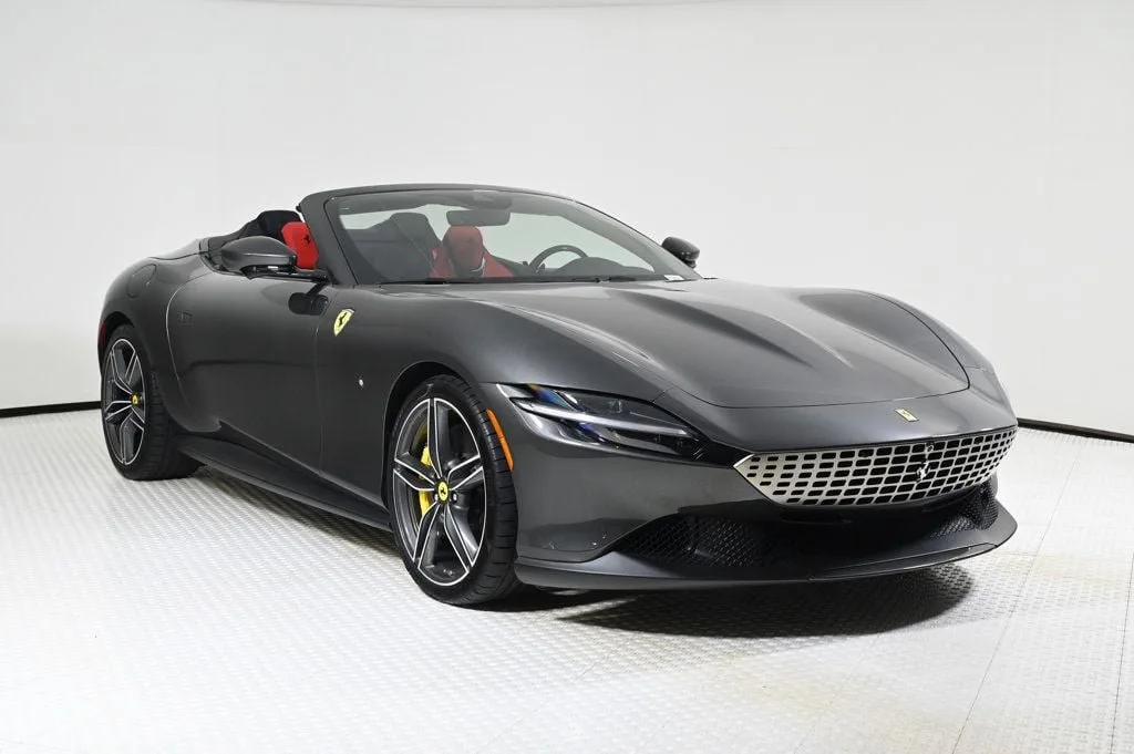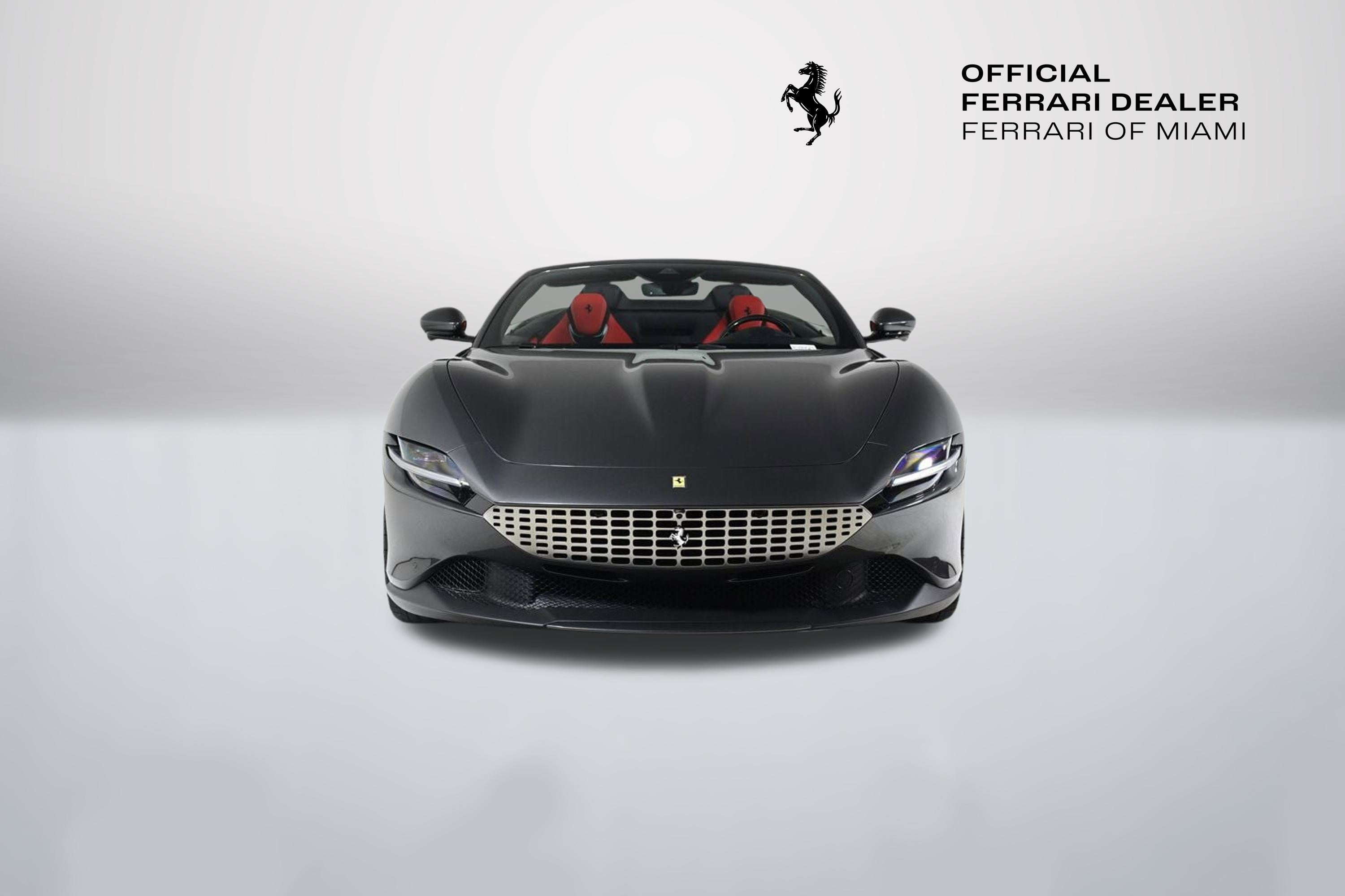 • - This 2024 Ferrari Roma Spider 2dr Convertible features a 3.9L 8 CYLINDER 8cyl Gasoline engine. It is equipped with a 8 Speed Automatic transmission. The vehicle is Canna di Fucile with a Rosso Ferrari Leather interior. It is offered As-Is, extended warranty is available. - Air Conditioning, Climate Control, Dual Zone Climate Control, Cruise Control, Power Steering, Power Windows, Power Mirrors, Leather Steering Wheel, Power Passenger Seat, Memory Seat Position, Clock, Tachometer, Digital Info Center, Tilt Steering Wheel, Telescoping Steering Wheel, Steering Wheel Radio Controls, Driver Airbag, Passenger Airbag, Side Airbags, Keyless Entry, Security System, ABS Brakes, Traction Control, Dynamic Stability, Rear Defogger, Fog Lights, Intermittent Wipers, AM/FM, Alloy Wheels, Leather Interior Surface, Navigation System, 7 Speakers, Radio data system, Automatic temperature control, Power driver seat, Four wheel independent suspension, 4-Wheel Disc Brakes, Ceramic disc brakes: front and rear, Dual front impact airbags, Dual front side impact airbags, Front anti-roll bar, Integrated roll-over protection, Low tire pressure warning, Rear anti-roll bar, Delay-off headlights, Fully automatic headlights, Bumpers: body-color, Convertible roof wind blocker, Heated door mirrors, Power door mirrors, Spoiler, Apple CarPlay, Compass, Convertible roof lining, Driver door bin, Front reading lights, Illuminated entry, Outside temperature display, Overhead console, Power convertible roof, Rear seat center armrest, Sport steering wheel, Standard Seats, Telescoping steering wheel, Front Center Armrest, Heated front seats, Leather Seat Trim, Sport Plus Seats, Passenger door bin, Wheels: 20 Standard Glossy Brilliant Silver, Rain sensing wipers Carpeted Floor Mats, Center Arm Rest, Cup Holders, Daytime Running Lights, Front Heated Seats, Heated Mirrors, Navigation System, Overhead Console, Rear Fog Lamps, Rear Spoiler, Rear Spoiler, Remote Fuel Door, Remote Trunk Lid, Roll Stability Control, Tire Pressure Monitor -