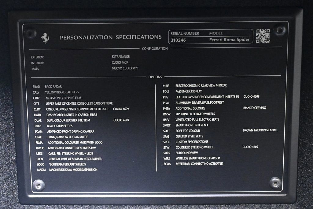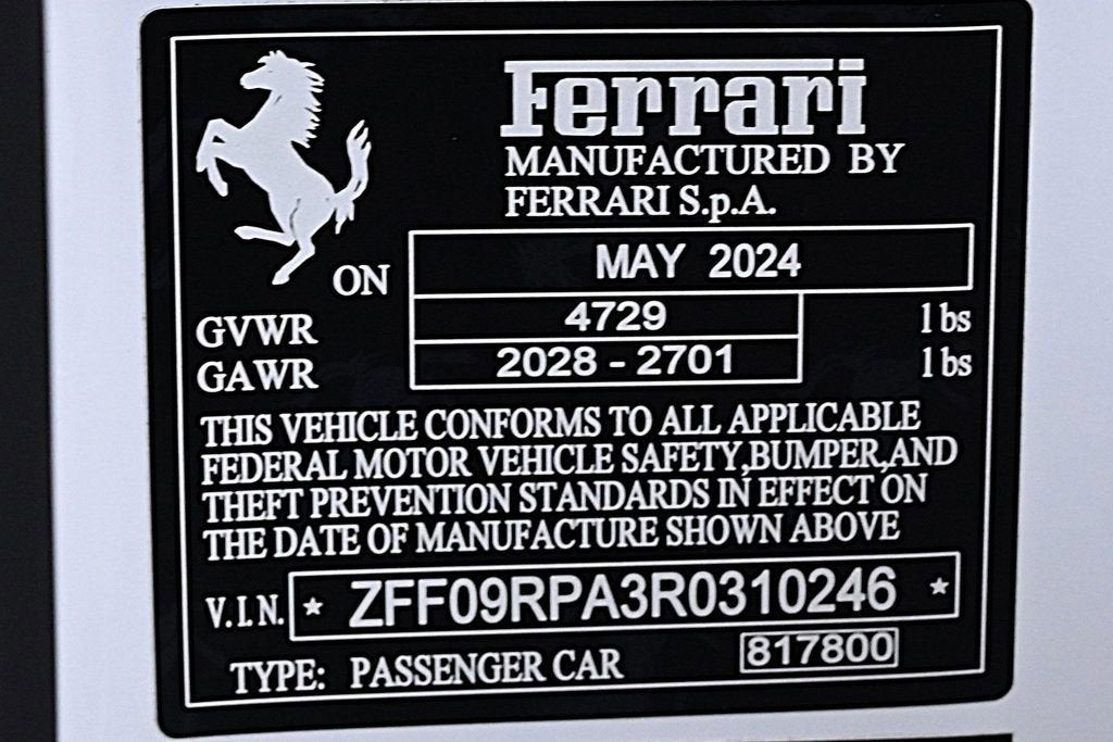 VERY LOW MILES! At just 945 miles, this 2024 Ferrari provides great value. KEY FEATURES AND OPTIONS Comes equipped with: Air Conditioning, MP3, Bluetooth, Navigation System, Front Heated Seats. This Ferrari Roma also includes Clock, Climate Control, Power Passenger Seat, Tachometer, Multi-Zone Climate Control, Memory Seat Position, Digital Info Center, Cruise Control, Tilt Steering Wheel, Power Steering, Telescoping Steering Wheel, Power Windows, Steering Radio Controls, Power Mirrors, Leather Steering Wheel, Driver Airbag, ABS Brakes, Fog Lights, Passenger Airbag, Traction Control, Intermittent Wipers, Side Airbags, Dynamic Stability, Keyless Entry, Rear Defogger, Security System, AM/FM, Touch Screen, Satellite Radio, Rear Spoiler, Center Arm Rest, Cup Holders, Remote Fuel Door, Remote Trunk Lid, Heated Mirrors, Rear Fog Lamps, Daytime Running Lights, Reverse Camera, Roll Stability Control, Tire Pressure Monitor, Carpeted Floor Mats, Overhead Console, Aux. Audio Input, HD Radio, Voice Control. Air Conditioning, Climate Control, Dual Zone Climate Control, Cruise Control, Power Steering, Power Windows, Power Mirrors, Leather Steering Wheel, Power Passenger Seat, Memory Seat Position, Clock, Tachometer, Digital Info Center, Tilt Steering Wheel, Telescoping Steering Wheel, Steering Wheel Radio Controls, Driver Airbag, Passenger Airbag, Side Airbags, Keyless Entry, Security System, ABS Brakes, Traction Control, Dynamic Stability, Rear Defogger, Fog Lights, Intermittent Wipers, AM/FM, Alloy Wheels, Leather Interior Surface, , 7 Speakers, Radio data system, Automatic temperature control, Power driver seat, Four wheel independent suspension, 4-Wheel Disc Brakes, Ceramic disc brakes: front and rear, Dual front impact airbags, Dual front side impact airbags, Front anti-roll bar, Integrated roll-over protection, Low tire pressure warning, Rear anti-roll bar, Delay-off headlights, Fully automatic headlights, Bumpers: body-color, Convertible roof wind blocker, Heated door mirrors, Power door mirrors, Spoiler, Apple CarPlay, Compass, Convertible roof lining, Driver door bin, Front reading lights, Illuminated entry, Outside temperature display, Overhead console, Power convertible roof, Rear seat center armrest, Sport steering wheel, Standard Seats, Telescoping steering wheel, Front Center Armrest, Heated front seats, Leather Seat Trim, Sport Plus Seats, Passenger door bin, Wheels: 20 Standard Glossy Brilliant Silver, Rain sensing wipers Aux. Audio Input, Bluetooth, Carpeted Floor Mats, Center Arm Rest, Cup Holders, Daytime Running Lights, Front Heated Seats, Heated Mirrors, Navigation System, Overhead Console, Rear Fog Lamps, Rear Spoiler, Rear Spoiler, Remote Fuel Door, Remote Trunk Lid, Reverse Camera, Roll Stability Control, Tire Pressure Monitor - Contact THE COLLECTION GENERAL at 786-349-9658 or GENERAL@THECOLLECTION.COM for more information. -