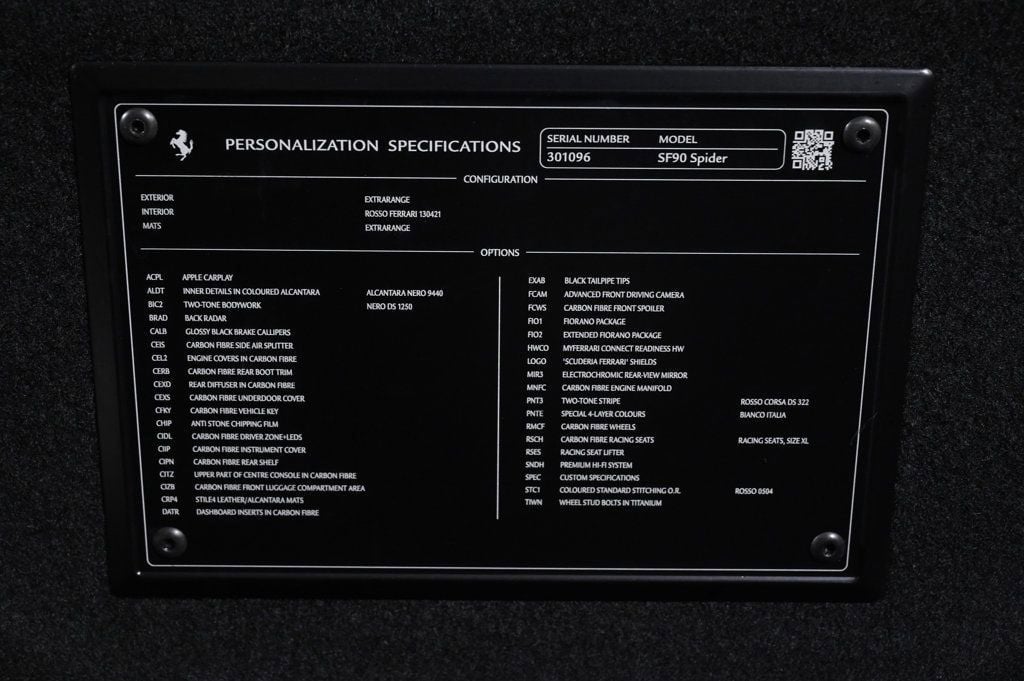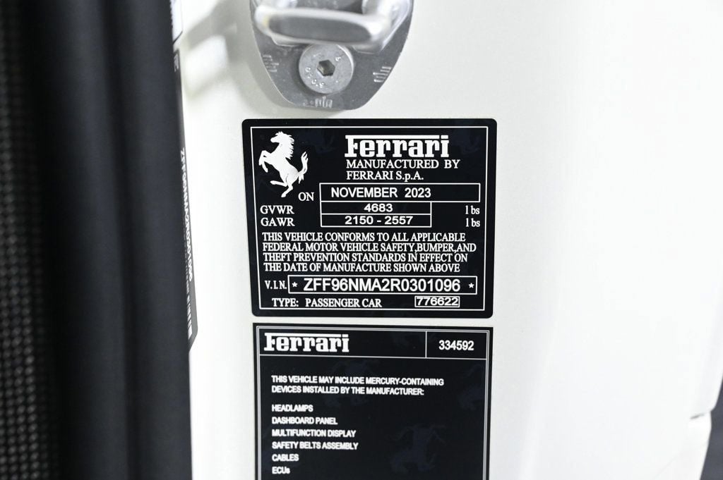 VERY LOW MILES! At just 1760 miles, this 2024 Ferrari provides great value. LOADED WITH VALUE! Comes equipped with: Air Conditioning, MP3, Navigation System. This Ferrari SF90 Spider also includes Clock, Climate Control, Power Passenger Seat, Tachometer, Memory Seat Position, Digital Info Center, Cruise Control, Tilt Steering Wheel, Power Steering, Telescoping Steering Wheel, Power Windows, Steering Radio Controls, Power Mirrors, Leather Steering Wheel, Leather Shifter, Driver Airbag, ABS Brakes, Fog Lights, Passenger Airbag, Traction Control, Intermittent Wipers, Side Airbags, Dynamic Stability, Keyless Entry, Rear Defogger, Security System, AM/FM, Rear Spoiler, Center Arm Rest, Cup Holders, Remote Fuel Door, Remote Trunk Lid, Heated Mirrors, Rear Fog Lamps, Daytime Running Lights, Parking Sensors, Reverse Camera, Roll Stability Control, Adaptive headlights, Heads Up Display, Tire Pressure Monitor, Premium Sound, Carpeted Floor Mats, Overhead Console, Aux. Audio Input, Onboard Hard Drive. Air Conditioning, Climate Control, Cruise Control, Power Steering, Power Windows, Power Mirrors, Leather Steering Wheel, Leather Shifter, Power Passenger Seat, Memory Seat Position, Clock, Tachometer, Digital Info Center, Tilt Steering Wheel, Telescoping Steering Wheel, Steering Wheel Radio Controls, Driver Airbag, Passenger Airbag, Side Airbags, Keyless Entry, Security System, ABS Brakes, Traction Control, Dynamic Stability, Rear Defogger, Fog Lights, Intermittent Wipers, AM/FM, Alloy Wheels, Leather Interior Surface, , Convertible HardTop, 6 Speakers, Radio data system, Automatic temperature control, Heads-Up Display, Power driver seat, Adaptive suspension, Four wheel independent suspension, 4-Wheel Disc Brakes, Ceramic disc brakes: front and rear, Dual front impact airbags, Dual front side impact airbags, Front anti-roll bar, Integrated roll-over protection, Low tire pressure warning, Passenger cancellable airbag, Rear anti-roll bar, Brake assist, Exterior Parking Camera Rear, Rear Parking Sensors, Delay-off headlights, Fully automatic headlights, Bumpers: body-color, Convertible roof wind blocker, Heated door mirrors, Power door mirrors, Spoiler, Apple CarPlay, Compass, Convertible roof lining, Driver door bin, Front reading lights, Illuminated entry, Outside temperature display, Overhead console, Power convertible roof, Sport steering wheel, Standard Seats, Telescoping steering wheel, Voltmeter, Front Center Armrest, Leather Seat Trim, Sport Plus Seats, Passenger door bin, Wheels: 20 x 9.5 Fr & 20 x 11.5 Rr, Glass rear window, Rain sensing wipers Adaptive headlights, Aux. Audio Input, Carpeted Floor Mats, Center Arm Rest, Cup Holders, Daytime Running Lights, Heads Up Display, Heated Mirrors, Navigation System, Overhead Console, Parking Sensors, Premium Sound, Rear Fog Lamps, Rear Spoiler, Rear Spoiler, Remote Fuel Door, Remote Trunk Lid, Reverse Camera, Roll Stability Control, Tire Pressure Monitor - Contact THE COLLECTION GENERAL at 786-349-9658 or GENERAL@THECOLLECTION.COM for more information. -