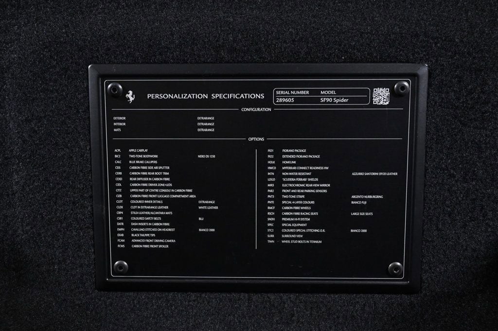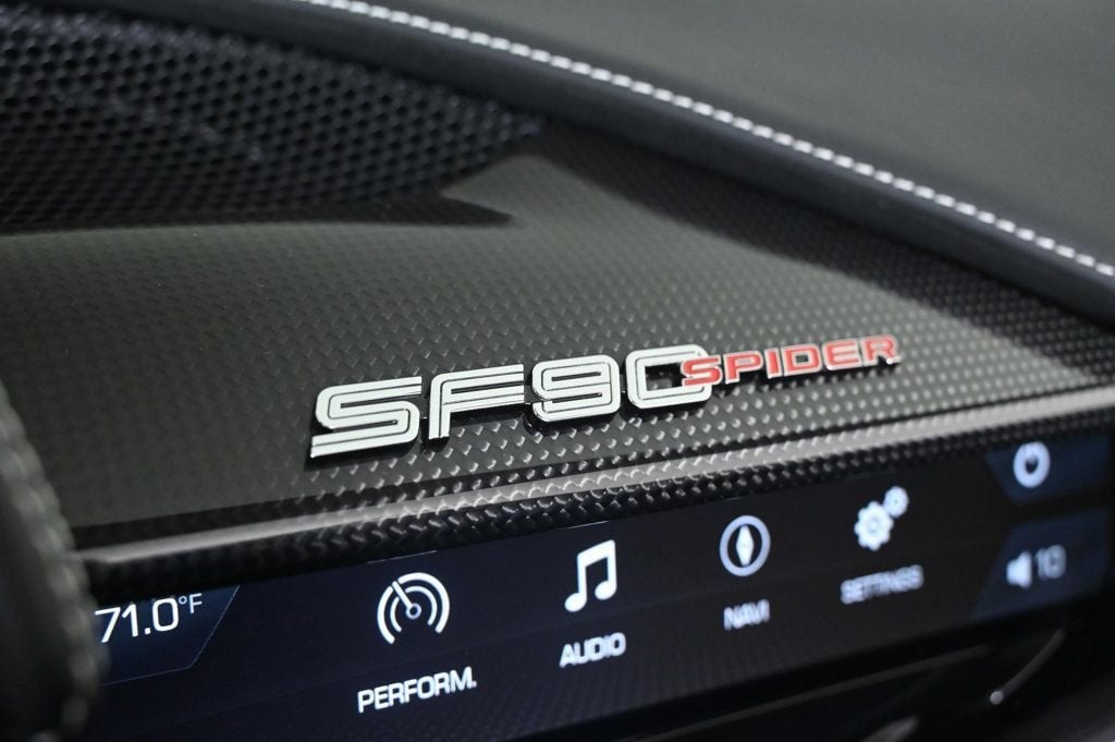 Recent Arrival! Bianco Fuji 2023 Ferrari SF90 Spider Base AWD 8-Speed Manual V8 Difference From the moment you drive into our one-of-a-kind facility, you will feel a difference in the energy here. Simply put: we are not your ordinary car dealership. What truly differentiates us is the professional level of service we provide. When you acquire a new or pre-owned automobile from us, both you and your automobile are treated with the utmost care and attentiveness like a member of our own family. That is why so many of our clients return to THE COLLECTION time and again, and refer us time and time again. We have also amassed an extraordinary team of employees. Plus, we have created all-new positions with your needs in mind. Including a Client Delight Manager which oversees our concierge team and whose sole purpose is to surprise and delight our guests; and on-staff technologists available to assist and educate you on all the latest features available on your vehicle. THE COLLECTION family will exceed your expectations, making this an uniquely gratifying experience that you will want to revisit time and time again. CARFAX One-Owner. Air Conditioning, Climate Control, Cruise Control, Power Steering, Power Windows, Power Mirrors, Leather Steering Wheel, Leather Shifter, Power Passenger Seat, Memory Seat Position, Clock, Tachometer, Digital Info Center, Tilt Steering Wheel, Telescoping Steering Wheel, Steering Wheel Radio Controls, Driver Airbag, Passenger Airbag, Side Airbags, Keyless Entry, Security System, ABS Brakes, Traction Control, Dynamic Stability, Rear Defogger, Fog Lights, Intermittent Wipers, AM/FM, Alloy Wheels, Leather Interior Surface, , Convertible HardTop, 6 Speakers, Radio data system, Automatic temperature control, Heads-Up Display, Power driver seat, Adaptive suspension, Four wheel independent suspension, 4-Wheel Disc Brakes, Ceramic disc brakes: front and rear, Dual front impact airbags, Dual front side impact airbags, Front anti-roll bar, Integrated roll-over protection, Low tire pressure warning, Passenger cancellable airbag, Rear anti-roll bar, Brake assist, Exterior Parking Camera Rear, Rear Parking Sensors, Delay-off headlights, Fully automatic headlights, Bumpers: body-color, Convertible roof wind blocker, Heated door mirrors, Power door mirrors, Spoiler, Apple CarPlay, Compass, Convertible roof lining, Driver door bin, Front reading lights, Illuminated entry, Outside temperature display, Overhead console, Power convertible roof, Sport steering wheel, Standard Seats, Telescoping steering wheel, Voltmeter, Front Center Armrest, Leather Seat Trim, Sport Plus Seats, Passenger door bin, Wheels: 20 x 9.5 Fr & 20 x 11.5 Rr, Glass rear window, Rain sensing wipers Adaptive headlights, Aux. Audio Input, Carpeted Floor Mats, Center Arm Rest, Cup Holders, Daytime Running Lights, Heads Up Display, Heated Mirrors, Navigation System, Overhead Console, Parking Sensors, Premium Sound, Rear Fog Lamps, Rear Spoiler, Rear Spoiler, Remote Fuel Door, Remote Trunk Lid, Reverse Camera, Roll Stability Control, Tire Pressure Monitor - Contact Alvaro Uribe at 786-628-7606 or auribe@ferrariofmiami.com for more information. -