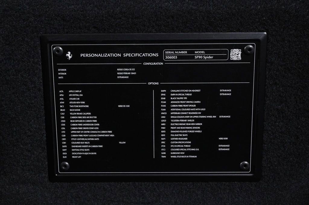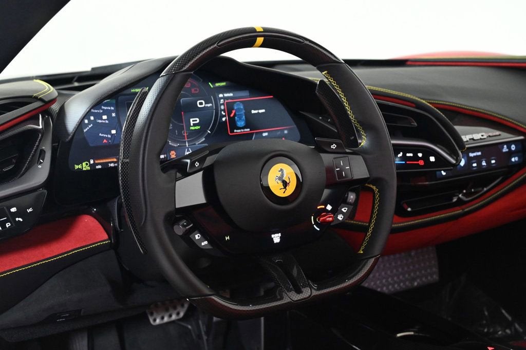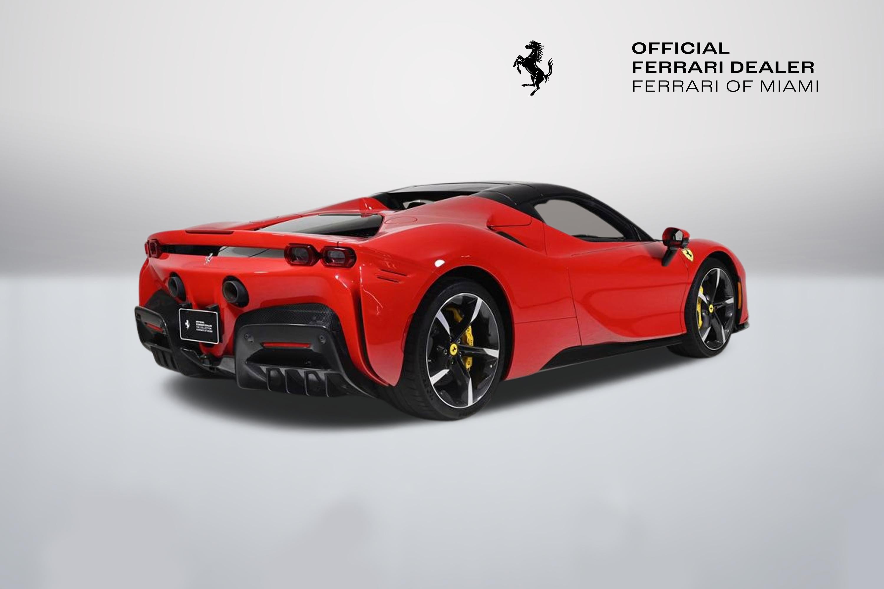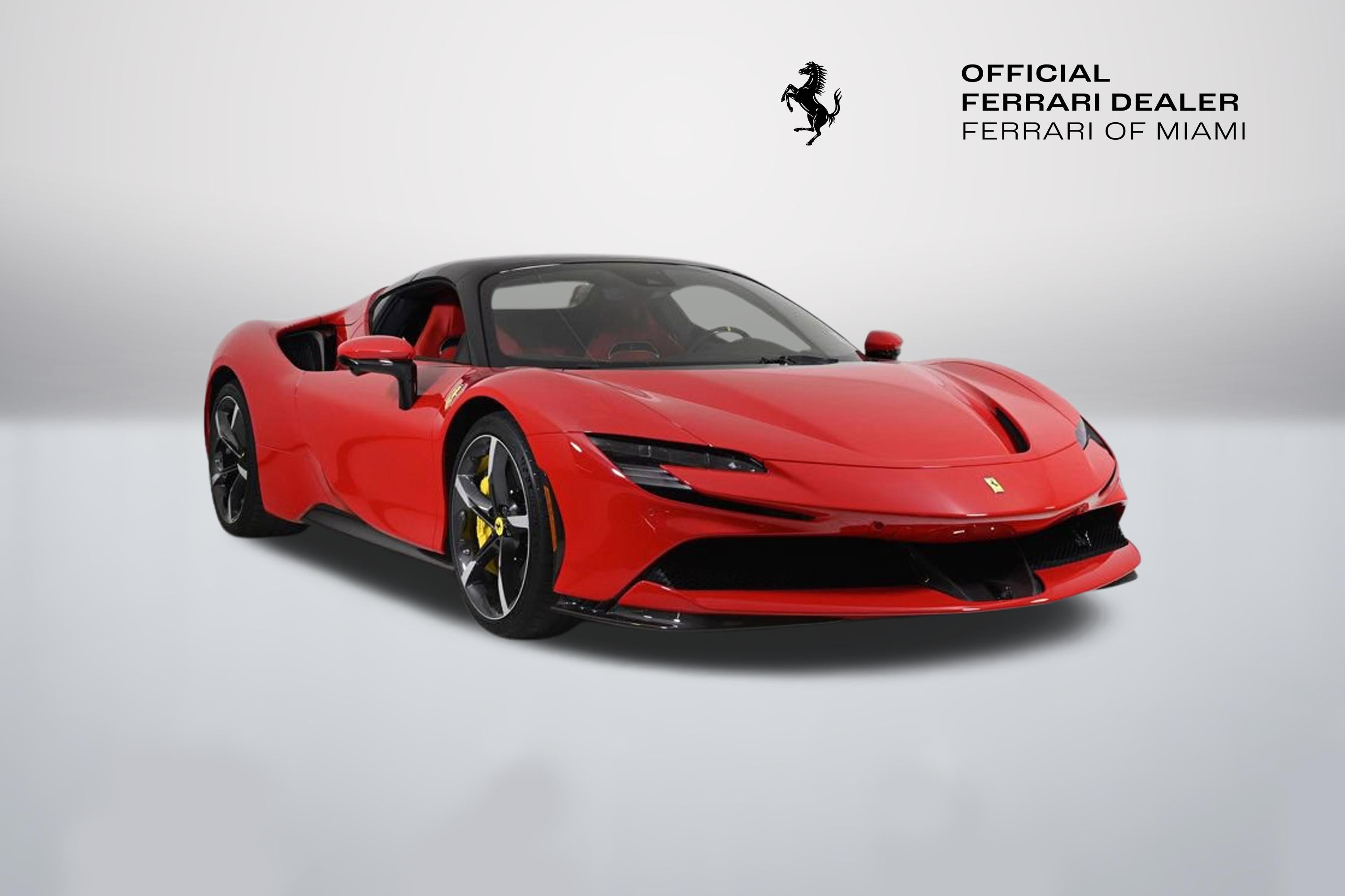 EXTREMELY LOW MILES! Get the best value from your vehicle purchase. This 2024 boasts an extremely low 712 miles! LOADED WITH VALUE! Comes equipped with: Air Conditioning, MP3, Navigation System. This Ferrari SF90 Spider also includes Clock, Climate Control, Power Passenger Seat, Tachometer, Memory Seat Position, Digital Info Center, Cruise Control, Tilt Steering Wheel, Power Steering, Telescoping Steering Wheel, Power Windows, Steering Radio Controls, Power Mirrors, Leather Steering Wheel, Leather Shifter, Driver Airbag, ABS Brakes, Fog Lights, Passenger Airbag, Traction Control, Intermittent Wipers, Side Airbags, Dynamic Stability, Keyless Entry, Rear Defogger, Security System, AM/FM, Rear Spoiler, Center Arm Rest, Cup Holders, Remote Fuel Door, Remote Trunk Lid, Heated Mirrors, Rear Fog Lamps, Daytime Running Lights, Parking Sensors, Reverse Camera, Roll Stability Control, Adaptive headlights, Heads Up Display, Tire Pressure Monitor, Premium Sound, Carpeted Floor Mats, Overhead Console, Aux. Audio Input, Onboard Hard Drive. Located on the corner of Biscayne and 16th Street. - Recent Arrival! Rosso Corsa 2024 Ferrari SF90 Spider Base AWD 8-Speed Manual V8 Difference From the moment you drive into our one-of-a-kind facility, you will feel a difference in the energy here. Simply put: we are not your ordinary car dealership. What truly differentiates us is the professional level of service we provide. When you acquire a new or pre-owned automobile from us, both you and your automobile are treated with the utmost care and attentiveness like a member of our own family. That is why so many of our clients return to THE COLLECTION time and again, and refer us time and time again. We have also amassed an extraordinary team of employees. Plus, we have created all-new positions with your needs in mind. Including a Client Delight Manager which oversees our concierge team and whose sole purpose is to surprise and delight our guests; and on-staff technologists available to assist and educate you on all the latest features available on your vehicle. THE COLLECTION family will exceed your expectations, making this an uniquely gratifying experience that you will want to revisit time and time again. CARFAX One-Owner. Odometer is 510 miles below market average! - This 2024 Ferrari SF90 Spider 2dr Convertible features a V8 8cyl engine. It is equipped with a 8 Speed Manual transmission. The vehicle is Rosso Corsa with a Rosso Ferrari Leather interior. It is offered As-Is, extended warranty is available. - Air Conditioning, Climate Control, Cruise Control, Power Steering, Power Windows, Power Mirrors, Leather Steering Wheel, Leather Shifter, Power Passenger Seat, Memory Seat Position, Clock, Tachometer, Digital Info Center, Tilt Steering Wheel, Telescoping Steering Wheel, Steering Wheel Radio Controls, Driver Airbag, Passenger Airbag, Side Airbags, Keyless Entry, Security System, ABS Brakes, Traction Control, Dynamic Stability, Rear Defogger, Fog Lights, Intermittent Wipers, AM/FM, Alloy Wheels, Leather Interior Surface, Navigation System, Convertible HardTop, 6 Speakers, Radio data system, Automatic temperature control, Heads-Up Display, Power driver seat, Adaptive suspension, Four wheel independent suspension, 4-Wheel Disc Brakes, Ceramic disc brakes: front and rear, Dual front impact airbags, Dual front side impact airbags, Front anti-roll bar, Integrated roll-over protection, Low tire pressure warning, Passenger cancellable airbag, Rear anti-roll bar, Brake assist, Exterior Parking Camera Rear, Rear Parking Sensors, Delay-off headlights, Fully automatic headlights, Bumpers: body-color, Convertible roof wind blocker, Heated door mirrors, Power door mirrors, Spoiler, Apple CarPlay, Compass, Convertible roof lining, Driver door bin, Front reading lights, Illuminated entry, Outside temperature display, Overhead console, Power convertible roof, Sport steering wheel, Standard Seats, Telescoping steering wheel, Voltmeter, Front Center Armrest, Leather Seat Trim, Sport Plus Seats, Passenger door bin, Wheels: 20 x 9.5 Fr & 20 x 11.5 Rr, Glass rear window, Rain sensing wipers Adaptive headlights, Aux.