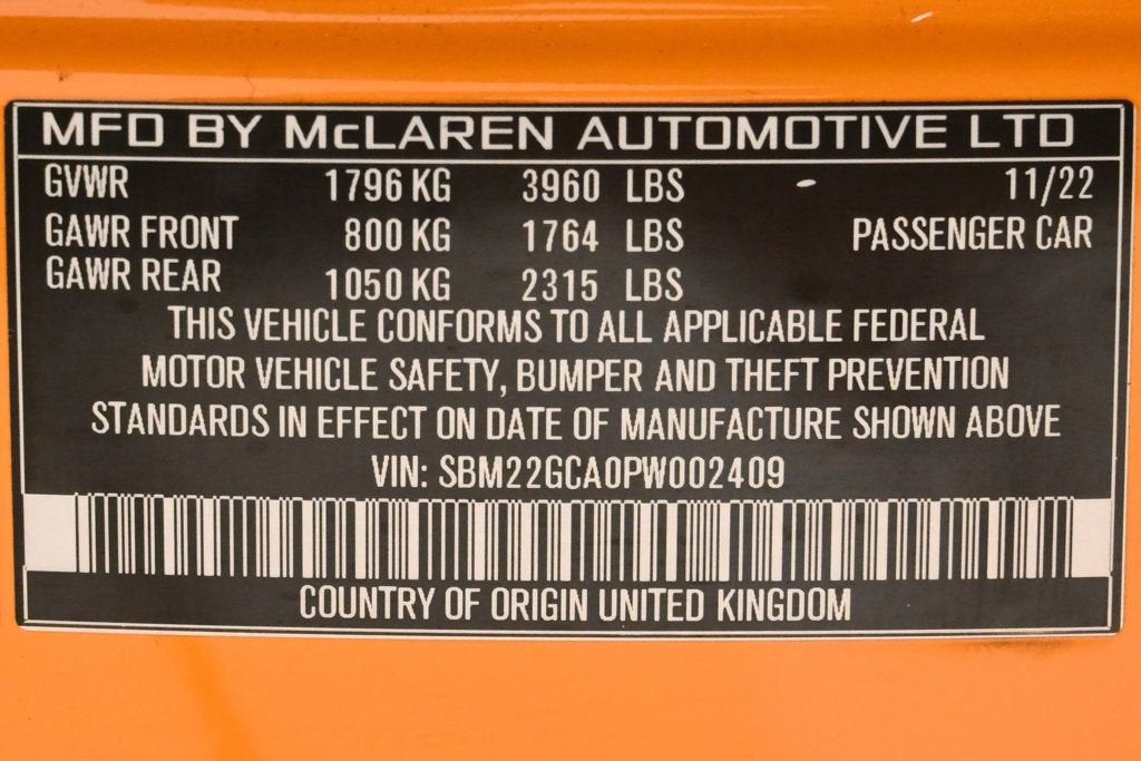 VERY LOW MILES! At just 8059 miles, this 2023 McLaren provides great value. KEY FEATURES AND OPTIONS Comes equipped with: Air Conditioning, Navigation System. This McLaren GT also includes Clock, Climate Control, Tachometer, Multi-Zone Climate Control, Digital Info Center, Cruise Control, Homelink System, Tilt Steering Wheel, Power Steering, Telescoping Steering Wheel, Power Windows, Power Mirrors, Leather Steering Wheel, Driver Airbag, ABS Brakes, Fog Lights, Passenger Airbag, Traction Control, Intermittent Wipers, Side Airbags, Dynamic Stability, Keyless Entry, Rear Defogger, Security System, AM/FM, Touch Screen, Satellite Radio, Rear Spoiler, Center Arm Rest, Cup Holders, Vanity Mirrors, Heated Mirrors, Rear Fog Lamps, Daytime Running Lights, Parking Sensors, Reverse Camera, Roll Stability Control, Tire Pressure Monitor, Premium Sound, Carpeted Floor Mats, Overhead Console, Aux. Audio Input, HD Radio, Onboard Hard Drive. Air Conditioning, Climate Control, Dual Zone Climate Control, Cruise Control, Power Steering, Power Windows, Power Mirrors, Leather Steering Wheel, Leather Shifter, Clock, Tachometer, Digital Info Center, Homelink System, Tilt Steering Wheel, Telescoping Steering Wheel, Driver Airbag, Passenger Airbag, Side Airbags, Keyless Entry, Security System, ABS Brakes, Traction Control, Dynamic Stability, Rear Defogger, Fog Lights, Intermittent Wipers, AM/FM, Alloy Wheels, Leather Interior Surface, Navigation System, Jet Black Luxe Interior, Premium Pack, 4 Speakers, Bowers & Wilkins 12-Speaker Audio System, Radio data system, Automatic temperature control, Cabin Air Purification with Pollen Filtration, Power Opening & Closing Glazed Rear Tailgate, Adaptive suspension, Auto-leveling suspension, Four wheel independent suspension, 4-Wheel Disc Brakes, Carbon Ceramic Brakes with McLaren Orange Calipers, Dual front impact airbags, Dual front side impact airbags, Front anti-roll bar, Knee airbag, Low tire pressure warning, Occupant sensing airbag, Rear anti-roll bar, Brake assist, Exterior Parking Camera Rear, Delay-off headlights, Fully automatic headlights, Carbon Black Seatbelt, Lithium-Ion Vehicle Battery Charger, Bumpers: body-color, Door auto-latch, Full LED Headlights with Static Adaptive Functionality, Heated door mirrors, Power door mirrors, Spoiler, Auto-dimming Rear-View mirror, Carbon Black Carpet, Carbon Interior Components, Compass, Driver door bin, Driver vanity mirror, Front reading lights, Illuminated entry, Jet Black Extended Branded Floor Mats, Jet Black Luxe Stitching & Double Piping, Jet Black Perf Softgrain Aniline Lthr Int Door Inserts, Jet Black Softgrain Aniline Leather Sill Finishers, Jet Black Stitching, Outside temperature display, Overhead console, Passenger vanity mirror, Power Adjust Heated Memory Comfort Seats, Sport steering wheel, Telescoping steering wheel, Voltmeter, Front Center Armrest, Front Comfort Seats, Nappa Leather Seat Trim, Perforated Softgrain Aniline Leather Seat Trim, Sport Plus Seats, Passenger door bin, Gloss Black Wheel Finish, Wheels: 20 x 8.0 Fr & 21 x 10.5 Rr 10 Twin-Spoke, Rain sensing wipers Aux. Audio Input, Carpeted Floor Mats, Center Arm Rest, Cup Holders, Daytime Running Lights, Heated Mirrors, Navigation System, Overhead Console, Parking Sensors, Premium Sound, Rear Fog Lamps, Rear Spoiler, Rear Spoiler, Reverse Camera, Roll Stability Control, Tire Pressure Monitor, Vanity Mirrors - Contact Alvaro Uribe at 786-628-7606 or auribe@ferrariofmiami.com for more information. -