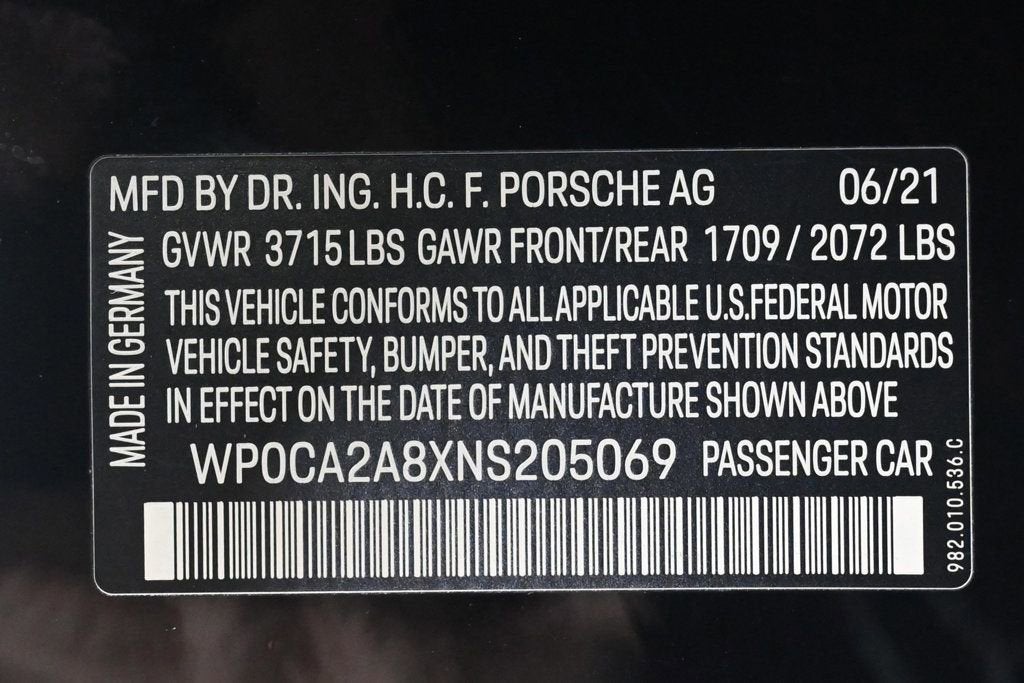 EXTREMELY LOW MILES! Get the best value from your vehicle purchase. This 2022 boasts an extremely low 5811 miles! KEY FEATURES AND OPTIONS Comes equipped with: Air Conditioning, MP3, Front Heated Seats. This Porsche 718 Boxster also includes Power Driver's Seat, Clock, Climate Control, Power Passenger Seat, Tachometer, Multi-Zone Climate Control, Memory Seat Position, Digital Info Center, Cruise Control, Homelink System, Tilt Steering Wheel, Power Steering, Telescoping Steering Wheel, Power Windows, Power Mirrors, Leather Shifter, Driver Airbag, ABS Brakes, Passenger Airbag, Traction Control, Intermittent Wipers, Side Airbags, Dynamic Stability, Keyless Entry, Rear Defogger, Security System, AM/FM, CD Player, Satellite Radio, Rear Spoiler, Sport Seats, Center Arm Rest, Cup Holders, Vanity Mirrors, Heated Mirrors, Daytime Running Lights, Parking Sensors, Reverse Camera, Side Curtain Airbags, Roll Stability Control, Adaptive headlights, Tire Pressure Monitor, Premium Sound, Carpeted Floor Mats, HID Headlamps, HD Radio, Onboard Hard Drive. Air Conditioning, Climate Control, Dual Zone Climate Control, Cruise Control, Power Steering, Power Windows, Power Mirrors, Leather Shifter, Power Drivers Seat, Power Passenger Seat, Memory Seat Position, Clock, Tachometer, Digital Info Center, Homelink System, Tilt Steering Wheel, Telescoping Steering Wheel, Driver Airbag, Passenger Airbag, Side Airbags, Keyless Entry, Security System, ABS Brakes, Traction Control, Dynamic Stability, Rear Defogger, Intermittent Wipers, AM/FM, CD Player, Alloy Wheels, Leather Interior Surface, Navigation System, 6 Speakers, DVD-Audio, Radio data system, Automatic temperature control, Porsche Communication Management, Power driver seat, Four wheel independent suspension, 4-Wheel Disc Brakes, Dual front impact airbags, Dual front side impact airbags, Front anti-roll bar, Integrated roll-over protection, Knee airbag, Low tire pressure warning, Occupant sensing airbag, Overhead airbag, Porsche Entry & Drive, Rear anti-roll bar, Brake assist, Exterior Parking Camera Rear, Delay-off headlights, Fully automatic headlights, Headlight cleaning, High intensity discharge headlights: Bi-Xenon, Auto-dimming door mirrors, Bumpers: body-color, Convertible roof wind blocker, Heated door mirrors, Power door mirrors, Spoiler, Apple CarPlay, Auto-dimming Rear-View mirror, Convertible roof lining, Driver door bin, Driver vanity mirror, Front reading lights, Heated 2-Way Electric Sport Seats, Illuminated entry, Outside temperature display, Passenger vanity mirror, Power convertible roof, Sport steering wheel, Telescoping steering wheel, Front Center Armrest, Heated front seats, Partial Leather Seat Trim, Sport Plus Seats, Passenger door bin, Wheels: 18 Cayman, Glass rear window, Rain sensing wipers, New Tires, Recent Oil Change, Passed Inspection, ONLY 5, 811 MILES / FLORIDA OWNED & GARAGED, FRESHLY SERVICED @ THE COLLECTION PORSCHE Adaptive headlights, Carpeted Floor Mats, Center Arm Rest, Cup Holders, Daytime Running Lights, Front Heated Seats, Heated Mirrors, HID Headlamps, Navigation System, Parking Sensors, Premium Sound, Rear Spoiler, Rear Spoiler, Reverse Camera, Roll Stability Control, Side Curtain Airbags, Sport Seats, Tire Pressure Monitor, Vanity Mirrors - Contact Alvaro Uribe at 786-628-7606 or auribe@ferrariofmiami.com for more information. -