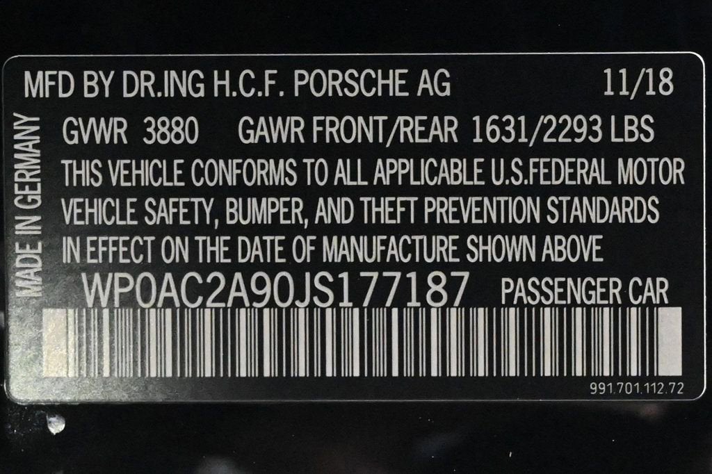 - 2018 KBB.com 10 Most Awarded Brands Air Conditioning, Climate Control, Dual Zone Climate Control, Cruise Control, Power Steering, Power Windows, Power Drivers Seat, Power Passenger Seat, Phone, Clock, Tachometer, Digital Info Center, Tilt Steering Wheel, Telescoping Steering Wheel, Driver Airbag, Passenger Airbag, Side Airbags, Keyless Entry, Security System, ABS Brakes, Traction Control, Dynamic Stability, Rear Defogger, Fog Lights, Intermittent Wipers, AM/FM, CD Player, Alloy Wheels, Leather Interior Surface, , Interior Trim Package in Black Brushed Aluminum, Smoking Package, Touring Package, 8 Speakers, DVD-Audio, Radio data system, Automatic temperature control, Porsche Communication Management, Power driver seat, Adaptive suspension, Four wheel independent suspension, Front Axle Lift System, Porsche Torque Vectoring, Steering Wheel in Leather, 4-Wheel Disc Brakes, Dual front impact airbags, Dual front side impact airbags, Front anti-roll bar, Knee airbag, Low tire pressure warning, Occupant sensing airbag, Overhead airbag, Passenger cancellable airbag, Rear anti-roll bar, Brake assist, Exterior Parking Camera Rear, Delay-off headlights, Fully automatic headlights, Headlight cleaning, High intensity discharge headlights: Bi-Xenon, Automatically Extending Rear Spoiler, Bumpers: body-color, Heated door mirrors, Power door mirrors, Rear Lid with PORSCHE in High Gloss Silver, Spoiler, Tailpipes in High Gloss Silver, 4-Way Sport Seats Plus, Apple CarPlay, Door Panel Arm Rest in Leather, Driver door bin, Driver vanity mirror, Floor Mats, Front reading lights, Illuminated entry, Outside temperature display, Overhead console, Passenger vanity mirror, Shift Lever in Leather, Sport steering wheel, Telescoping steering wheel, Front Center Armrest, Leather/Alcantara Seat Trim, Sport Plus Seats, Luggage Net in Passenger Footwell, Passenger door bin, Wheels: 9J x 20 Fr/12J x 20 Rr GT3, Recent Oil Change, Passed Inspection, AndroidTM Auto/Apple Carplay, Automatic Headlights, Backup Camera, Bluetooth, Navigation, Voice Recognition, 1 OWNER / GARAGE KEPT., FULLY INSPECTED AND FRESHLY SERVICED @ THE COLLECTION PORSCHE, NICELY EQUIPPED WITH MANY PORSCHE FACTORY ORDERED OPTIONS., PORSCHE FACTORY CERTIFIED PREOWNED VEHICLE WARRANTY APPLIES, INCLUDES DEALER INSTALLED FULL BODY WRAP CLEAR PAINT PROTECTION FILM. (PPF) Bluetooth, Center Arm Rest, Cup Holders, Daytime Running Lights, HID Headlamps, Navigation System, Overhead Console, PCM, Premium Sound, Rear Fog Lamps, Rear Spoiler, Rear Spoiler, Reverse Camera, Roll Stability Control, Side Curtain Airbags, Sport Seats, Tire Pressure Monitor, Vanity Mirrors - Contact THE COLLECTION GENERAL at 786-349-9658 or GENERAL@THECOLLECTION.COM for more information. -