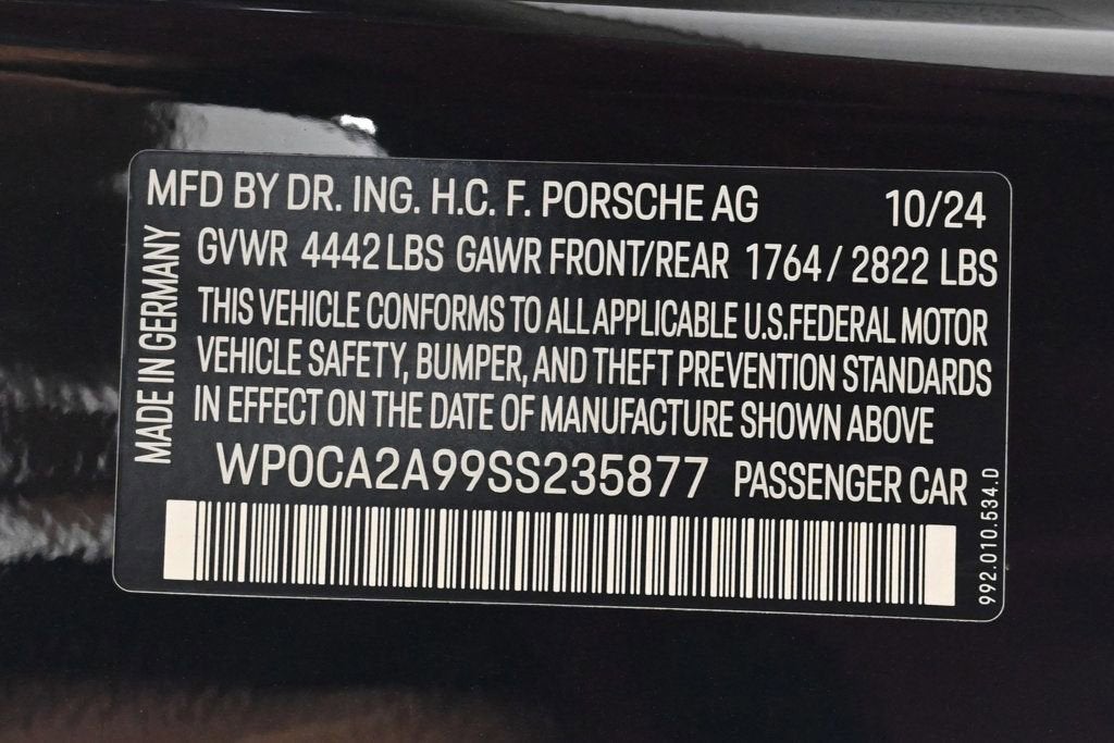 VERY LOW MILES! At just 7193 miles, this 2025 Porsche provides great value. LOADED WITH VALUE! Comes equipped with: Air Conditioning, MP3, Front Heated Seats. This Porsche 911 also includes Power Driver's Seat, Clock, Climate Control, Power Passenger Seat, Tachometer, Multi-Zone Climate Control, Digital Info Center, Cruise Control, Homelink System, Tilt Steering Wheel, Power Steering, Telescoping Steering Wheel, Power Windows, Steering Radio Controls, Power Mirrors, Leather Steering Wheel, Leather Shifter, Driver Airbag, ABS Brakes, Fog Lights, Passenger Airbag, Traction Control, Intermittent Wipers, Side Airbags, Dynamic Stability, Keyless Entry, Rear Defogger, Security System, AM/FM, Sliding Rear Window, Rear Spoiler, Sport Seats, Center Arm Rest, Cup Holders, Vanity Mirrors, Heated Mirrors, Rear Fog Lamps, Daytime Running Lights, Parking Sensors, Reverse Camera, Side Curtain Airbags, Roll Stability Control, PCM, Tire Pressure Monitor, Carpeted Floor Mats, Overhead Console, Aux. Audio Input, HD Radio. Air Conditioning, Climate Control, Dual Zone Climate Control, Cruise Control, Power Steering, Power Windows, Power Mirrors, Leather Steering Wheel, Leather Shifter, Power Drivers Seat, Power Passenger Seat, Memory Seat Position, Phone, Clock, Tachometer, Digital Info Center, Homelink System, Tilt Steering Wheel, Telescoping Steering Wheel, Steering Wheel Radio Controls, Driver Airbag, Passenger Airbag, Side Airbags, Keyless Entry, Security System, ABS Brakes, Traction Control, Dynamic Stability, Rear Defogger, Fog Lights, Intermittent Wipers, AM/FM, Alloy Wheels, Leather Interior Surface, Navigation system: Porsche Communication Management (PCM), Premium Package, Sound Package Plus, Sport Chrono Package, SportDesign Package, 8 Speakers, Radio data system, Automatic temperature control, Ionizer, Porsche Communication Management, Power driver seat, Adaptive suspension, Four wheel independent suspension, 4-Wheel Disc Brakes, Dual front impact airbags, Dual front side impact airbags, Emergency communication system, Front anti-roll bar, Integrated roll-over protection, Low tire pressure warning, Occupant sensing airbag, Overhead airbag, Rear anti-roll bar, Brake assist, Exterior Parking Camera Rear, Delay-off headlights, Fully automatic headlights, Auto-dimming door mirrors, Bumpers: body-color, Convertible roof wind blocker, Double Stripe Decal on Fr Trunk Lid in Matte Black, Exclusive Design Taillights, HD-Matrix Design LED Headlights, Heated door mirrors, PORSCHE Logo on Rear in High Gloss Black, Power door mirrors, Spoiler, Sport Exhaust System with Tailpipes in Black, Auto-dimming Rear-View mirror, Convertible roof lining, Driver door bin, Driver vanity mirror, Front reading lights, Heated steering wheel, Illuminated entry, Interior Trim Inlays in Matte Carbon Fiber, Lane Change Assist (LCA), Outside temperature display, Overhead console, Passenger vanity mirror, Power convertible roof, Sport steering wheel, Surround View with Active Parking Support, Telescoping steering wheel, Front Center Armrest, Front Ventilated Seats, Heated front seats, Leather Seat Trim, Sport Plus Seats, Extended Range 22.1 Gallon Fuel Tank, Passenger door bin, Storage Net in Passenger Footwell, Wheel Center Caps with Colored Porsche Crest, Wheels Painted in High Gloss Black (1NZ), Wheels: 20 Front/21 Rear Carrera Excl Design, Glass rear window, Rain sensing wipers, Recent Oil Change, Passed Inspection, 360 Camera, Active Parking Assist, Adaptive Headlights, AndroidTM Auto/Apple Carplay, Automatic Headlights, Backup Camera, Blind-Spot Monitors, Bluetooth, Collision Warning Alert System, Heated/Cooled Seats, Navigation, Touchscreen Controls, Voice Recognition, Wi-Fi Hotspot, 1 OWNER / ONLY 7, 193 MILES / FLORIDA GARAGED, SOLD NEW AND FULLY SERVICED @ THE COLLECTION PORSCHE, NICELY EQUIPPED WITH MANY PORSCHE FACTORY ORDERED OPTIONS. Adaptive headlights, Aux. Audio Input, Bluetooth, Carpeted Floor Mats, Center Arm Rest, Cup Holders, Daytime Running Lights, Front Heated Seats, Heated Mirrors, Navigation System, Overhead Console, Parking Sensors, PCM, Rear Fog Lamps, Rear Spoiler, Rear Spoiler, Reverse Camera, Roll Stability Control, Side Curtain Airbags, Sliding Rear Window, Sport Seats, Tire Pressure Monitor, Vanity Mirrors - Contact THE COLLECTION GENERAL at 786-349-9658 or GENERAL@THECOLLECTION.COM for more information. -