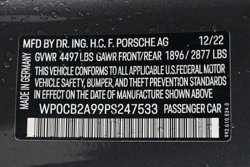 EXTREMELY LOW MILES! Get the best value from your vehicle purchase. This 2023 boasts an extremely low 7882 miles! KEY FEATURES AND OPTIONS Comes equipped with: Air Conditioning, MP3, Bluetooth, Front Heated Seats. This Porsche 911 also includes Power Driver's Seat, Clock, Climate Control, Power Passenger Seat, Tachometer, Multi-Zone Climate Control, Digital Info Center, Cruise Control, Homelink System, Tilt Steering Wheel, Power Steering, Telescoping Steering Wheel, Power Windows, Steering Radio Controls, Power Mirrors, Leather Steering Wheel, Leather Shifter, Driver Airbag, ABS Brakes, Fog Lights, Passenger Airbag, Traction Control, Intermittent Wipers, Side Airbags, Dynamic Stability, Keyless Entry, Rear Defogger, Security System, AM/FM, Sliding Rear Window, Rear Spoiler, Sport Seats, Center Arm Rest, Cup Holders, Vanity Mirrors, Heated Mirrors, Rear Fog Lamps, Daytime Running Lights, Parking Sensors, Reverse Camera, Side Curtain Airbags, Roll Stability Control, PCM, Tire Pressure Monitor, Premium Sound, Carpeted Floor Mats, Overhead Console, Aux. Audio Input, Voice Control. Air Conditioning, Climate Control, Dual Zone Climate Control, Cruise Control, Power Steering, Power Windows, Power Mirrors, Leather Steering Wheel, Leather Shifter, Power Drivers Seat, Power Passenger Seat, Memory Seat Position, Clock, Tachometer, Digital Info Center, Homelink System, Tilt Steering Wheel, Telescoping Steering Wheel, Steering Wheel Radio Controls, Driver Airbag, Passenger Airbag, Side Airbags, Keyless Entry, Security System, ABS Brakes, Traction Control, Dynamic Stability, Rear Defogger, Fog Lights, Intermittent Wipers, AM/FM, Alloy Wheels, Leather Interior Surface, Wheels: 20 Front/21 Rear Carrera S, Wheels: 20 Front/21 Rear RS Spyder Design, 4-Way Sport Seats, Leather Seat Trim, Ventilated Front Seats, Porsche Communication Management, Premium Package, SportDesign Package, Power Folding Exterior Mirrors, 23.7 Gal. Extended Range Fuel Tank, Sport Tailpipes in Black, Porsche Dynamic Light System Plus (PDLS+), Lane Change Assist (LCA), Surround View, Storage Package, Ambient Lighting, 4-Wheel Disc Brakes, Navigation system: Porsche Communication Management (PCM), Exterior Parking Camera Rear, 8 Speakers, Auto-dimming Rear-View mirror, Front beverage holders, Telescoping steering wheel, Sport steering wheel, Split folding rear seat, Rear anti-roll bar, Rain sensing wipers, Radio data system, Power driver seat, Power door mirrors, Power convertible roof, Passenger vanity mirror, Passenger door bin, Overhead console, Overhead airbag, Outside temperature display, Occupant sensing airbag, Low tire pressure warning, Integrated roll-over protection, Illuminated entry, Heated front seats, Heated door mirrors, Glass rear window, Fully automatic headlights, Front reading lights, Front anti-roll bar, Four wheel independent suspension, Dual front side impact airbags, Dual front impact airbags, Driver vanity mirror, Driver door bin, Delay-off headlights, Convertible roof wind blocker, Convertible roof lining, Bumpers: body-color, Brake assist, Automatic temperature control, Auto-dimming door mirrors, Adaptive suspension, Spoiler, Front Center Armrest, Sport Plus Seats Aux. Audio Input, Bluetooth, Carpeted Floor Mats, Center Arm Rest, Cup Holders, Daytime Running Lights, Front Heated Seats, Heated Mirrors, Overhead Console, Parking Sensors, PCM, Premium Sound, Rear Fog Lamps, Rear Spoiler, Rear Spoiler, Reverse Camera, Roll Stability Control, Side Curtain Airbags, Sliding Rear Window, Sport Seats, Tire Pressure Monitor, Vanity Mirrors - Contact Alvaro Uribe at 786-628-7606 or auribe@ferrariofmiami.com for more information. -