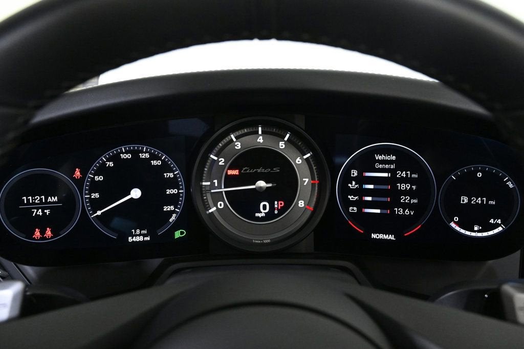 • Roadside Assistance Air Conditioning, Climate Control, Dual Zone Climate Control, Cruise Control, Power Steering, Power Windows, Power Mirrors, Leather Shifter, Power Drivers Seat, Power Passenger Seat, Memory Seat Position, Phone, Clock, Tachometer, Digital Info Center, Homelink System, Tilt Steering Wheel, Telescoping Steering Wheel, Steering Wheel Radio Controls, Driver Airbag, Passenger Airbag, Side Airbags, Keyless Entry, Security System, ABS Brakes, Traction Control, Dynamic Stability, Rear Defogger, Fog Lights, Intermittent Wipers, AM/FM, Alloy Wheels, Leather Interior Surface, Navigation System, Navigation system: Porsche Communication Management (PCM), Storage Package, 12 Speakers, Burmester High-End Surround Sound System, Radio data system, Automatic temperature control, Ionizer, Porsche Communication Management, Power driver seat, Steering wheel memory, Adaptive suspension, Four wheel independent suspension, Heated GT Sport Steering Wheel in Leather, 4-Wheel Disc Brakes, Ceramic disc brakes: front and rear, Dual front impact airbags, Dual front side impact airbags, Front anti-roll bar, Integrated roll-over protection, Low tire pressure warning, Occupant sensing airbag, Overhead airbag, Rear anti-roll bar, Brake assist, Exterior Parking Camera Rear, Auto High-beam Headlights, Delay-off headlights, Fully automatic headlights, Auto-dimming door mirrors, Bumpers: body-color, Convertible roof wind blocker, Exclusive Design Fuel Cap, Exclusive Design Taillights, Heated door mirrors, Power door mirrors, Spoiler, Ambient Lighting, Auto-dimming Rear-View mirror, Convertible roof lining, Driver door bin, Driver vanity mirror, Front reading lights, Illuminated Door-Sill Guards in Matte Carbon Fiber, Illuminated entry, Lane Change Assist (LCA), Outside temperature display, Overhead console, Passenger vanity mirror, Power convertible roof, Preparation for Front Porsche Dashcam, Sport steering wheel, Surround View, Telescoping steering wheel, Front Center Armrest, Heated front seats, Split folding rear seat, Sport Plus Seats, Passenger door bin, Wheels Painted in High Gloss Black, Wheels: 20 Fr/21 Rr 911 Turbo S Exclusive Design, Glass rear window, Rain sensing wipers, Recent Oil Change, Passed Inspection, Adaptive Headlights, AndroidTM Auto/Apple Carplay, Automatic Headlights, Backup Camera, Blind-Spot Monitors, Bluetooth, Navigation, Touchscreen Controls, Voice Recognition, Wi-Fi Hotspot, NICELY EQUIPPED WITH MANY PORSCHE FACTORY ORDERED OPTIONS., FULLY INSPECTED & FRESHLY SERVICED @ THE COLLECTION PORSCHE, ONLY 5, 484 MILES / CLEAN CAR FAX VEHICLE HISTORY REPORT., PORSCHE FACTORY CERTIFIED PREOWNED WARRANTY APPLIES., INCLUDES DEALER INSTALLED FULL FRONT CLEAR PAINT PROTECTION FILM. (PPF) Adaptive headlights, Aux. Audio Input, Bluetooth, Carbon Fiber Trim, Carpeted Floor Mats, Center Arm Rest, Cup Holders, Daytime Running Lights, Front Heated Seats, Heated Mirrors, Navigation System, Overhead Console, Parking Sensors, PCM, Rear Fog Lamps, Rear Spoiler, Rear Spoiler, Reverse Camera, Roll Stability Control, Side Curtain Airbags, Sliding Rear Window, Sport Seats, Tire Pressure Monitor, Vanity Mirrors - Contact Alvaro Uribe at 786-628-7606 or auribe@ferrariofmiami.com for more information. -