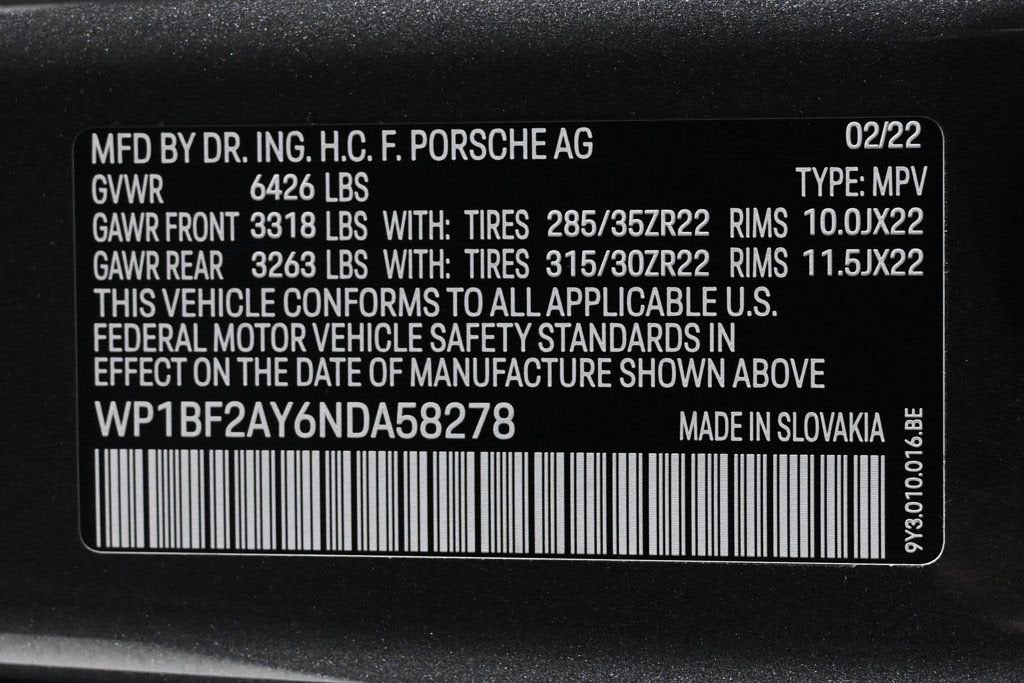 VERY LOW MILES! At just 6159 miles, this 2022 Porsche provides great value. LOADED WITH VALUE! Comes equipped with: Air Conditioning, Sunroof, Navigation System, Rear Heated Seats , Front Heated Seats. This Porsche Cayenne Coupe also includes Power Driver's Seat, Clock, Climate Control, Power Passenger Seat, Tachometer, Multi-Zone Climate Control, Memory Seat Position, Digital Info Center, Cruise Control, Homelink System, Privacy Glass/Tinted Windows, Tilt Steering Wheel, Power Steering, Telescoping Steering Wheel, Power Windows, Steering Radio Controls, Power Mirrors, Moonroof, Leather Steering Wheel, Leather Shifter, Driver Airbag, ABS Brakes, Fog Lights, Passenger Airbag, Traction Control, Intermittent Wipers, Dynamic Stability, Keyless Entry, Rear Defogger, Security System, AM/FM, Subwoofer, Surround Sound, Satellite Radio, Sliding Rear Window, Rear Spoiler, Sport Seats, Center Arm Rest, Remote Fuel Door, Vanity Mirrors, Heated Mirrors, Rear Fog Lamps, Child Proof Door Locks, Daytime Running Lights, Parking Sensors, Reverse Camera, Side Curtain Airbags, Roll Stability Control, Rear-Side Airbags, PCM, Adaptive headlights, Power Lift Gate, Tire Pressure Monitor, Carpeted Floor Mats, Overhead Console, Aux. Audio Input, HD Radio, Onboard Hard Drive. Air Conditioning, Climate Control, Dual Zone Climate Control, Cruise Control, Tinted Windows, Power Steering, Power Windows, Power Mirrors, Leather Steering Wheel, Leather Shifter, Power Drivers Seat, Power Passenger Seat, Memory Seat Position, Phone, Clock, Tachometer, Digital Info Center, Homelink System, Tilt Steering Wheel, Telescoping Steering Wheel, Steering Wheel Radio Controls, Sunroof, Moonroof, Driver Airbag, Passenger Airbag, Keyless Entry, Security System, ABS Brakes, Traction Control, Dynamic Stability, Rear Defogger, Fog Lights, Intermittent Wipers, AM/FM, Alloy Wheels, Leather Interior Surface, , 14 Speakers, Audio memory, Radio data system, Automatic temperature control, HVAC memory, Porsche Communication Management, Power driver seat, Soft Close Doors, Steering wheel memory, Adaptive suspension, Auto-leveling suspension, Four wheel independent suspension, Heated Steering Wheel in Carbon Fiber, 4-Wheel Disc Brakes, Dual front impact airbags, Dual front side impact airbags, Front anti-roll bar, Knee airbag, Low tire pressure warning, Occupant sensing airbag, Overhead airbag, Rear anti-roll bar, Rear side impact airbag, Power Liftgate, Brake assist, Exterior Parking Camera Rear, Delay-off headlights, Fully automatic headlights, Auto-dimming door mirrors, Bumpers: body-color, Clear LED Taillights, Exclusive Design Fuel Cap, Heated door mirrors, Porsche Logo in Satin Black with Mdl Desig Delete, Power door mirrors, Spoiler, Sport Tailpipes in Black, Turn signal indicator mirrors, 18-Way Adaptive Sport Seats Plus with Comfort Memory, Ambient Lighting, Apple CarPlay, Auto-dimming Rear-View mirror, Driver door bin, Driver vanity mirror, Front reading lights, Heated steering wheel, Illuminated entry, Outside temperature display, Overhead console, Passenger vanity mirror, Rear reading lights, Rear seat center armrest, Surround View, Telescoping steering wheel, Voltmeter, Front Center Armrest, Front Seat Ventilation, Heated front seats, Heated rear seats, Split folding rear seat, Sport Plus Seats, Passenger door bin, Wheels: 21 Cayenne Turbo with Arch Extensions, Wheels: 22 RS Spyder Design, Rain sensing wipers, Axle Ratio: TBD Adaptive headlights, Aux. Audio Input, Carpeted Floor Mats, Center Arm Rest, Child Proof Door Locks, Daytime Running Lights, Front Heated Seats, Heated Mirrors, Navigation System, Overhead Console, Parking Sensors, PCM, Power Lift Gate, Rear Fog Lamps, Rear Heated Seats , Rear Spoiler, Rear Spoiler, Rear-Side Airbags, Remote Fuel Door, Reverse Camera, Roll Stability Control, Side Curtain Airbags, Sliding Rear Window, Sport Seats, Tire Pressure Monitor, Vanity Mirrors - Contact Alvaro Uribe at 786-628-7606 or auribe@ferrariofmiami.com for more information. -