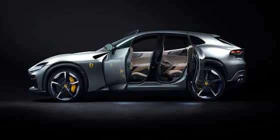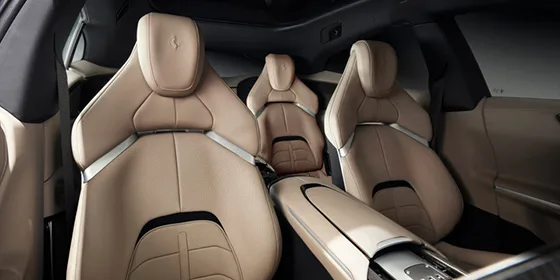 The sleek, athletic exterior of the Ferrari Purosangue gives the impression of coupe proportions. Maranello deems the weight distribution (49%Front/51%Rear) optimal for a mid-front sports car. The layout and design is vastly different from other modern GT archetypes, i.e. crossovers and SUVs. The front grill has been replaced by a dihedral suspended on the lower section while slim DRL lights are sandwiched between 2 pairs of air intakes. The aerodynamic design is obvious at the front aero bridge which reduces drag. The Purosangue has unique floating wheel arch strips in order to prevent transverse turbulence. The imposing rear diffuser and suspended rear spoiler continue the intelligent, air funneling design at the rear.